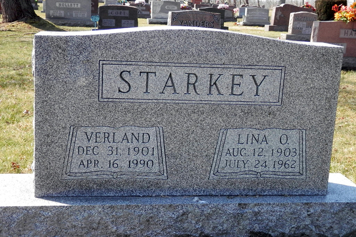 4 "Ohio Death Index, 1908-1932, 1938-1944, and 1958-2007," database, FamilySearch (accessed 4 May 2015), Name: Verland Starkey; Event Date: 16 Apr 1990; Event Place: Dover, Tuscarawas, Ohio, United States.