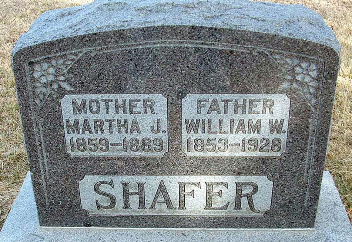 Find A Grave, database and images (https://www.findagrave.com/ ); accessed 02 December 2018), memorial page for Martha Jane Gantz Shafer (14 Jun 1859'96Sep 1889), Find A Grave Memorial no. 33039165, citing Pleasant View Cemetery, Huntsville, Reno County, Kansas, USA