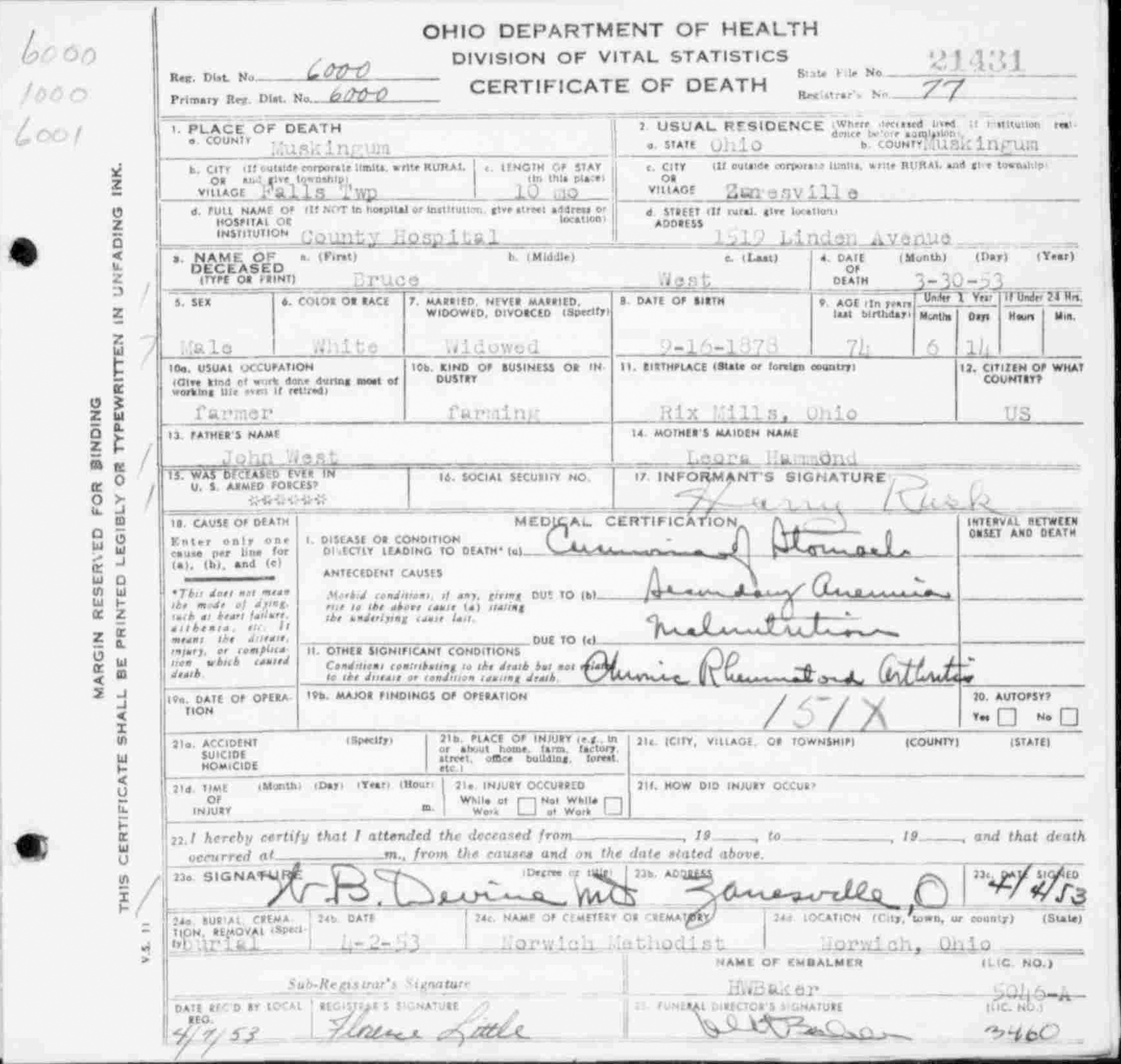 • Death Image: 30 March 1953, in Zanesville, OH.