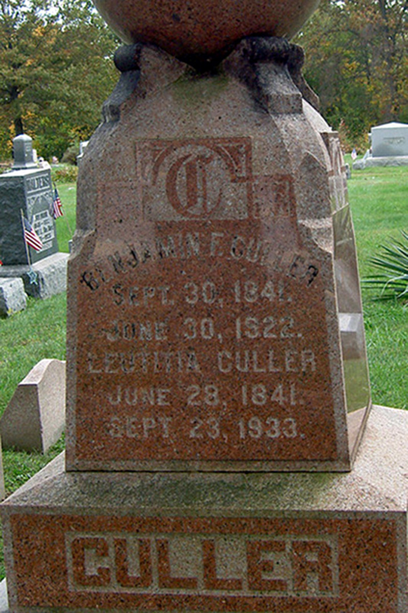 • She was buried after 23 September 1933 in the Mount Zion in Lucas, OH. Letetia married Benjamin Franklin Culler, son of John Culler and Catherine Ernsberger, about 1862.1 2 3 (Benjamin Franklin Culler was born on 30 September 1841 in , Richland County, OH,1 2 3 5 6 7 died on 30 June 1922 in Monroe Township, Richland County, OH 6 7 and was buried on 3 July 1922 in Lucas, OH 6 7.)