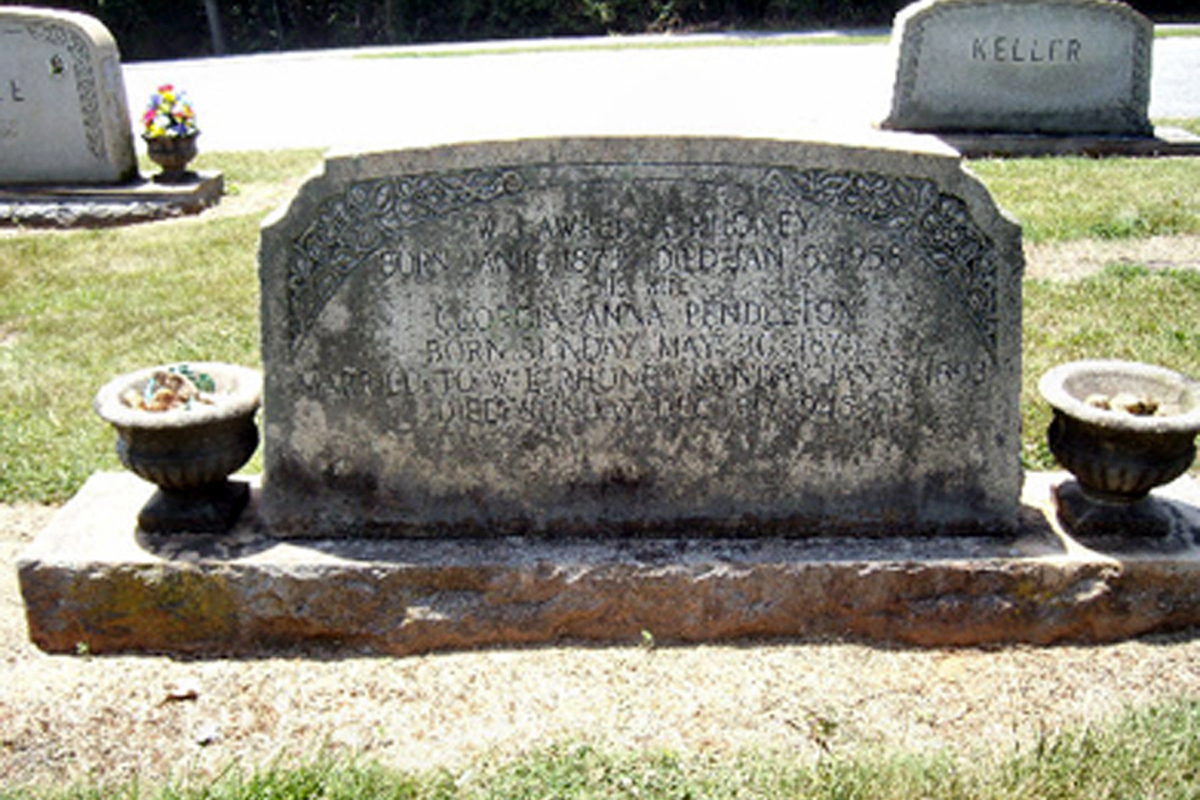 • He was buried after 5 January 1958 in the Mulls Chapel Cemetery in Cooksville, NC. William married Georgia Anna Pendleton, daughter of George Washington Pendleton and Frances C. Chapman, on 8 January 1893 in Catawba County, NC.1 2 3 4 (Georgia Anna Pendleton was born on 30 May 1875 in Catawba County, NC,1 2 3 4 6 7 died on 30 December 1945 in Lovelady Township, Burke County, NC 2 7 and was buried on 3 January 1946 in Cooksville, NC 7.)