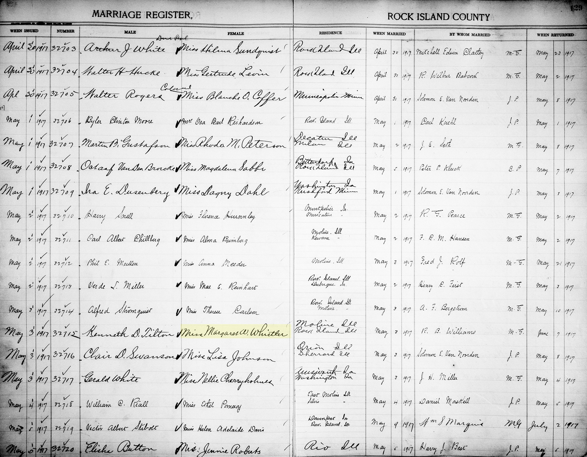 • Marriage Image: 3 May 1917, in , Rock Island County, IL. • Kenneth D. Tilton and Marguerite W. Whisler were divorced before 1940.