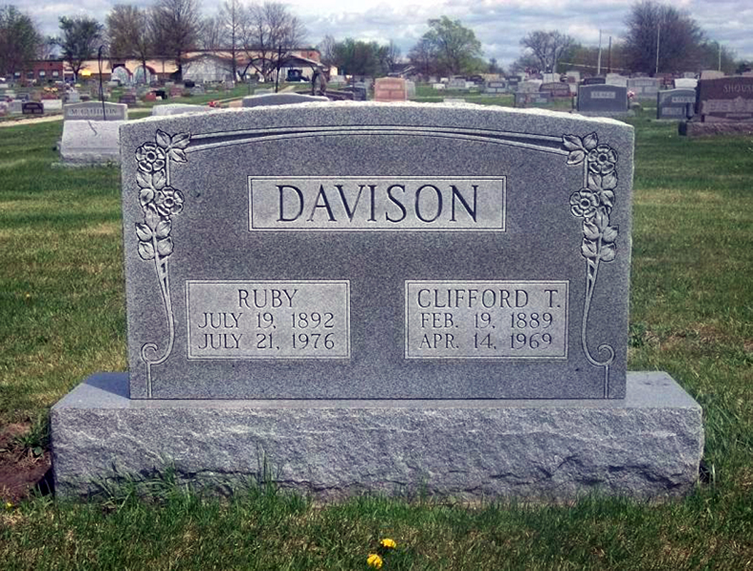 7 Find A Grave, database and images (https://www.findagrave.com/ ); accessed 16 May 2020, memorial page for Ruby Davison (19 Jul 1892\endash 21 Jul 1976), Find a Grave Memorial no. 65863272, citing La Plata Cemetery, La Plata, Macon County, Missouri, USA
