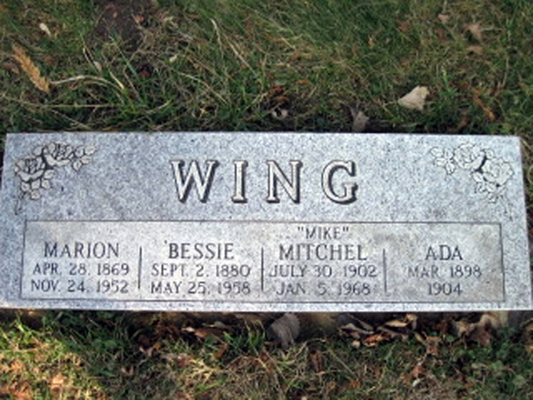 2 Find A Grave, database and images (https://www.findagrave.com/ ); accessed 29 May 2019), memorial page for Mitchel "Mike" Wing (30 Jul 1902\endash 5 Jan 1968), Find A Grave Memorial no. 86912106, citing Dickson Cemetery, Lynxville, Crawford County, Wisconsin, USA