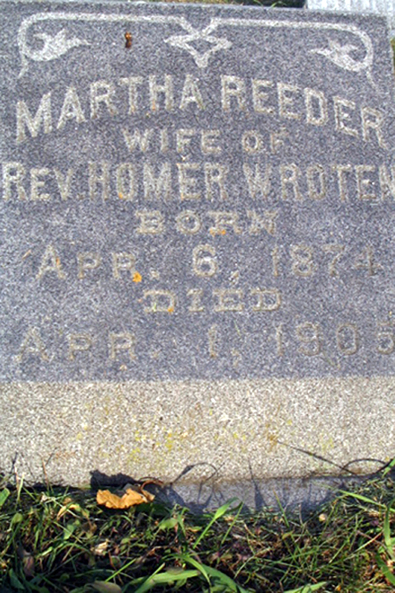• She was buried after 1 April 1905 in the Sand Hill Cemetery in Center Township, Cedar, IA. Martha married Homer Wroten on an unknown date. (Homer Wroten was born about 1870 and died on an unknown date.) |