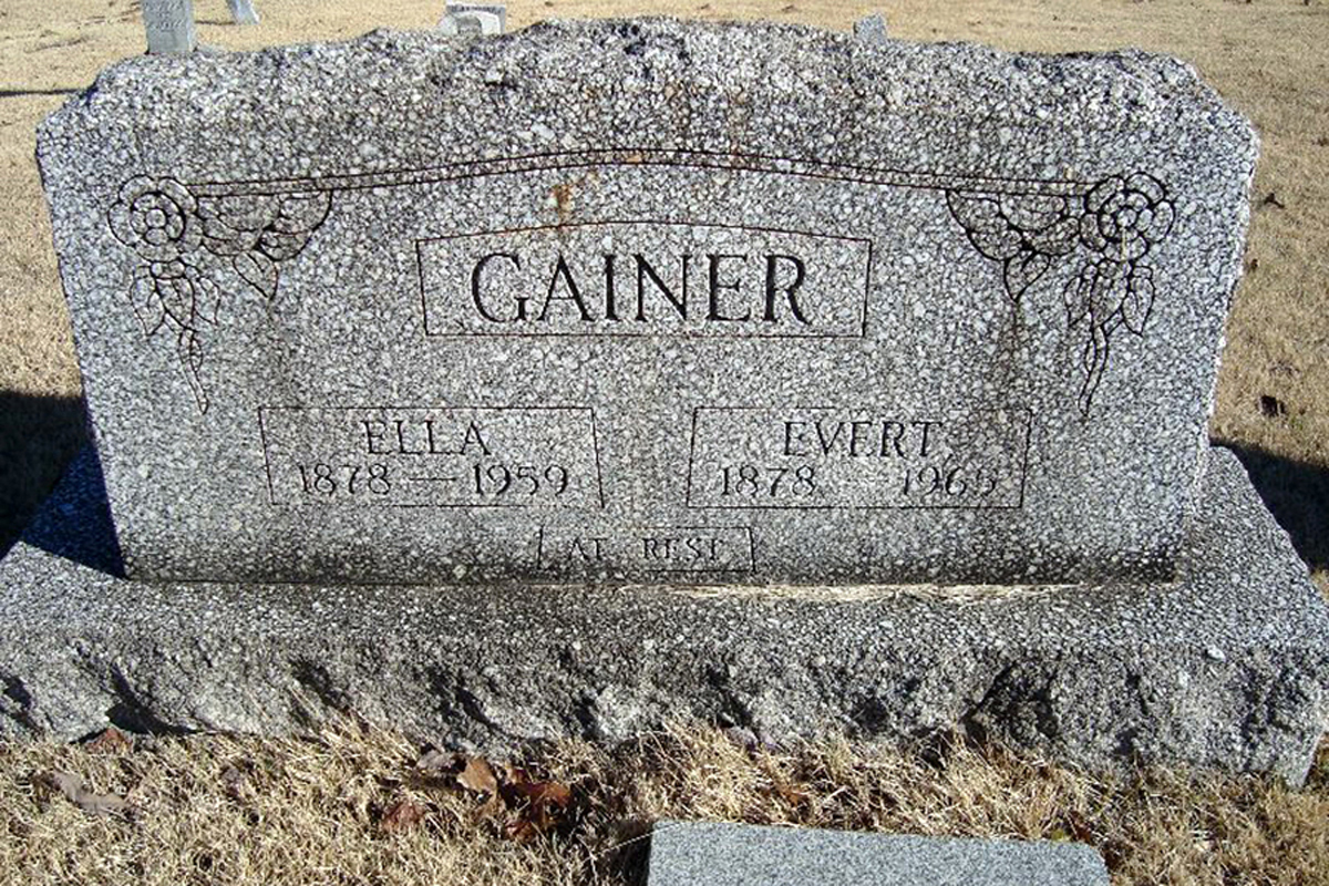 • She was buried after 6 September 1959 in the Saint Paul Cemetery in Mount Zion, WV. Ella married Everett Gainer, son of Levi Gainer and Ellis Allison Stalnaker, on 26 November 1899 in Calhoun County, WV.1 2 3 4 5 (Everett Gainer was born on 3 June 1878 in Calhoun County, WV,1 3 5 9 died on 15 March 1965 in Calhoun County, WV 1 9 and was buried after 15 March 1965 in Center District, Calhoun, WV 1 9.)