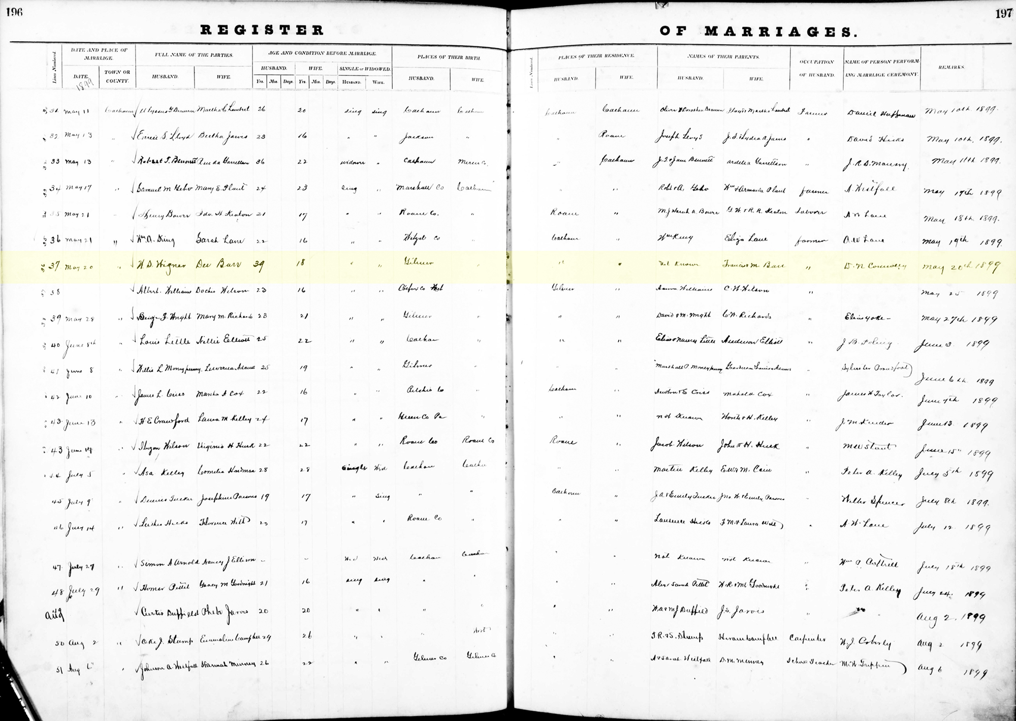 • Marriage Image: 20 May 1899, in Calhoun County, WV. • They appeared on the 1900 US Census in Sherman Magisterial District, Calhoun, West Virginia, United States on 6 July 1900. 3