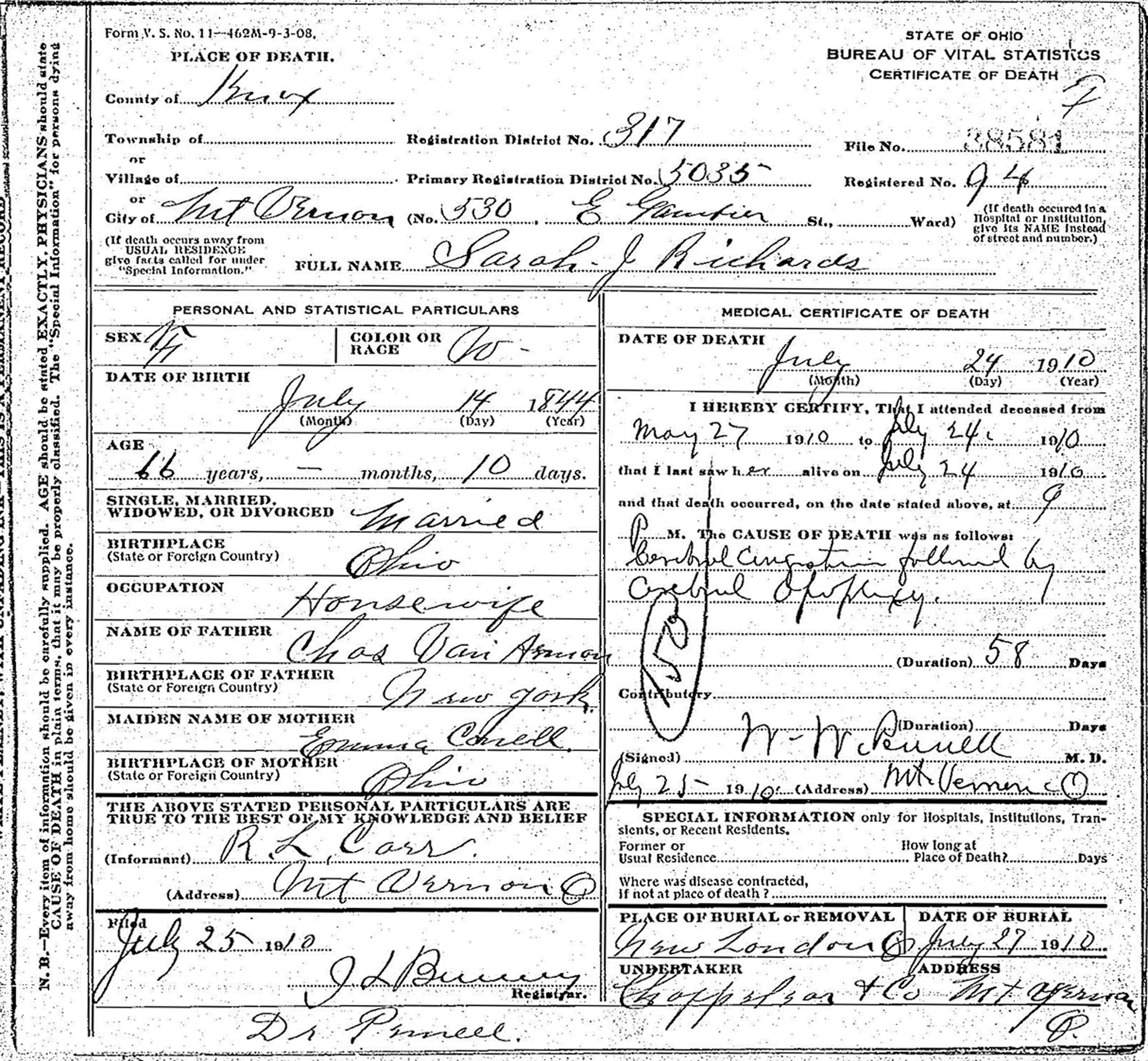 • Death Image: 24 July 1910, in Mount Vernon, OH. 6