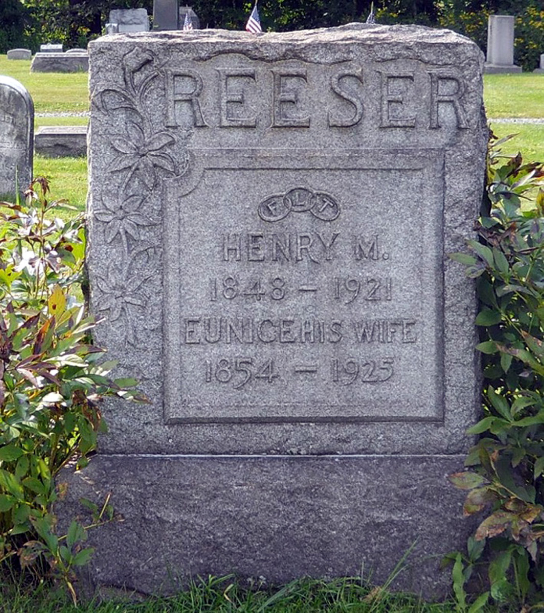 11 Find A Grave, database and images (https://www.findagrave.com/ ); accessed 28 March 2021), memorial page for Henry Manning Reeser (1848-9 Apr 1921), Find a Grave Memorial no. 105953789, citing Newton Township Cemetery East Side, Newton Falls, Trumbull County, Ohio, USA
