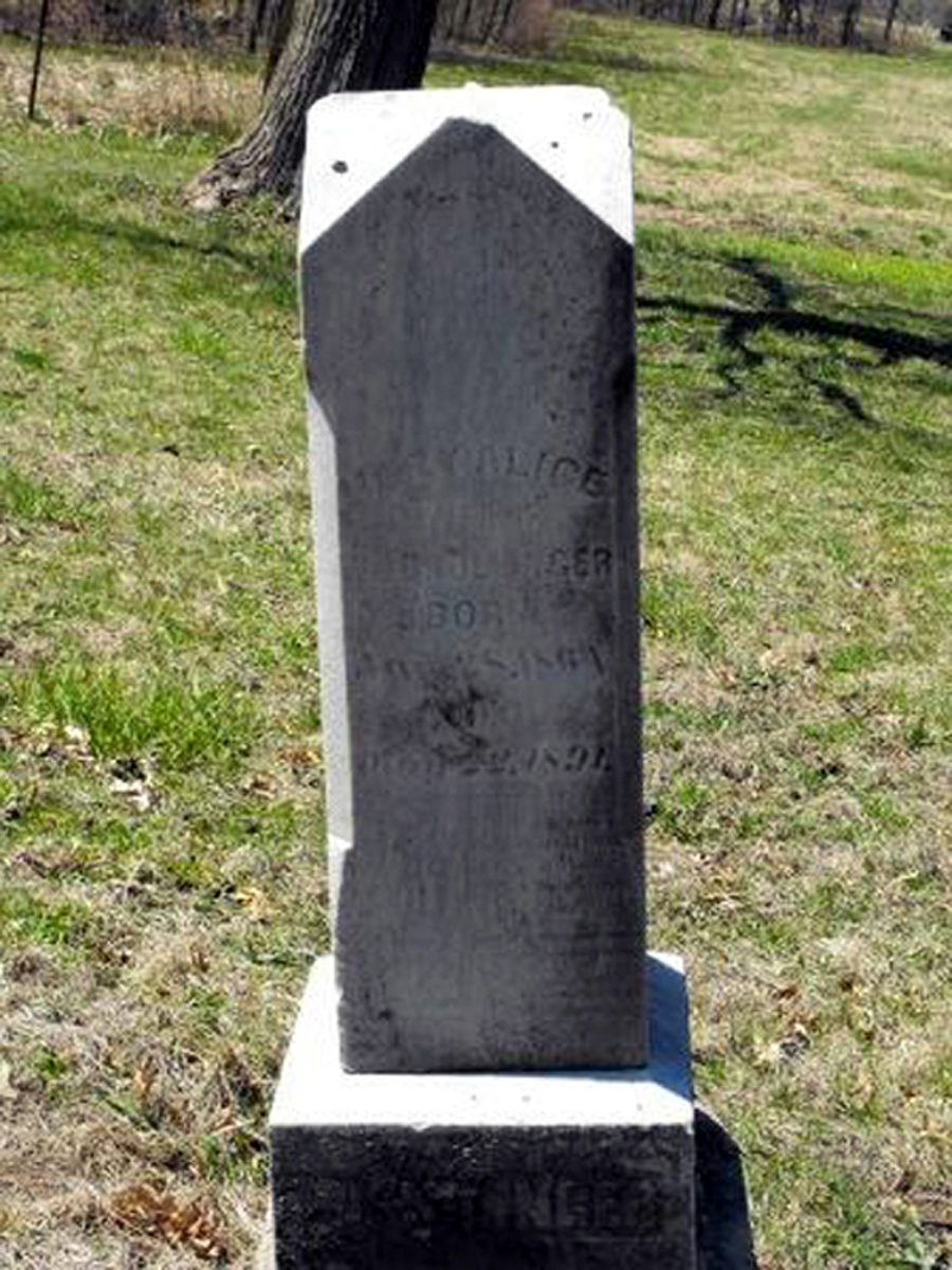 3 Find A Grave, database and images (https://www.findagrave.com/ ); (accessed 07 September 2019), memorial page for Mary Alice Drollinger (28 Jan 1864\endash 22 May 1891), Find A Grave Memorial no. 37094653, citing Wilson Pioneer Cemetery, Fort Madison, Lee County, Iowa, USA
