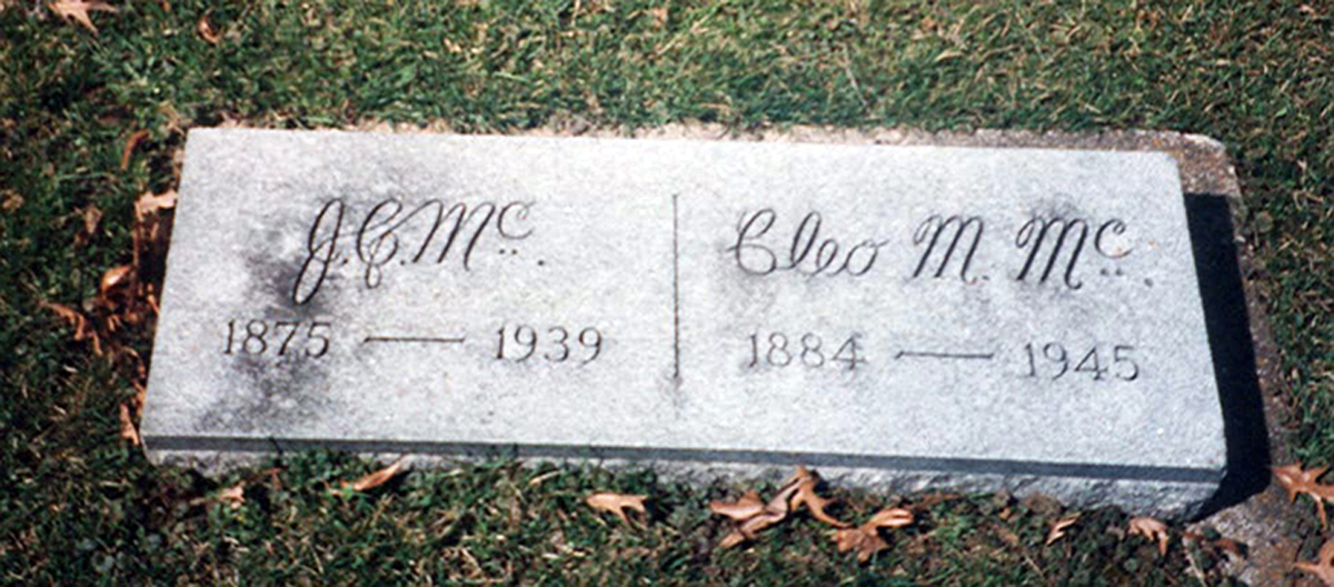 1 "Iowa, County Marriages, 1838-1934," database, FamilySearch (https://familysearch.org/search/collection/1805551 : accessed 12 Apr 2014), Name: John C Mcconaughy; Spouse's Name: Cleo V Munfield; Event Date: 22 Sep 1903; Event Place: Morley, Jones, Iowa.