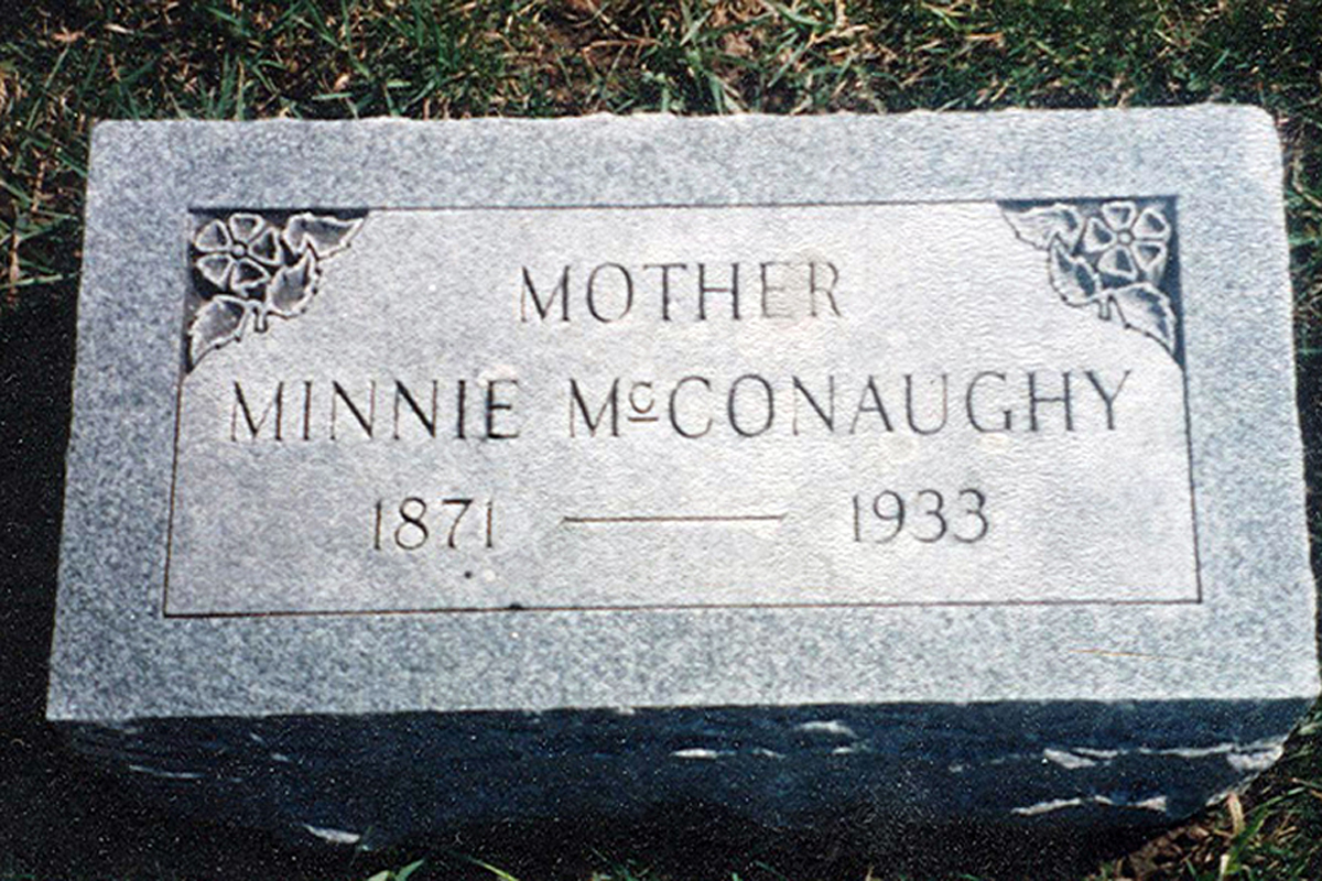 • She was buried after 7 March 1933 in the Forest Hill Cemetery in Fairview, IA. Minnie married Earl Clarence McConaughy, son of Ard Duncan McConaughy and Minerva J. Ernsbarger, on 2 September 1896 in Anamosa, IA.1 2 3 (Earl Clarence McConaughy was born on 27 July 1871 in , Jones County, IA,2 3 5 7 8 9 died on 5 April 1939 9 and was buried after 5 April 1939 in Fairview, IA 9.)