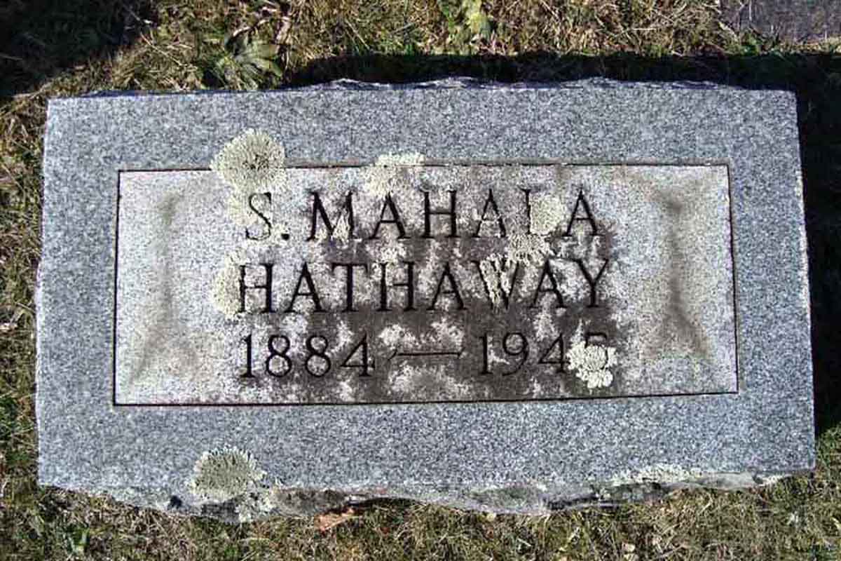 • She was buried in 1945 in the Mount Zion Cemetery in Grantsville, WV. Sarah married William Morton Hathaway, son of Francis Hathaway and Clora McCulty, on 1 April 1900 in Calhoun County, WV.1 (William Morton Hathaway was born on 30 September 1877 in Sycamore, WV,1 2 4 died on 7 January 1925 in Akron, OH 1 4 5 and was buried on 11 January 1925 in Grantsville, WV 1 4 5.)