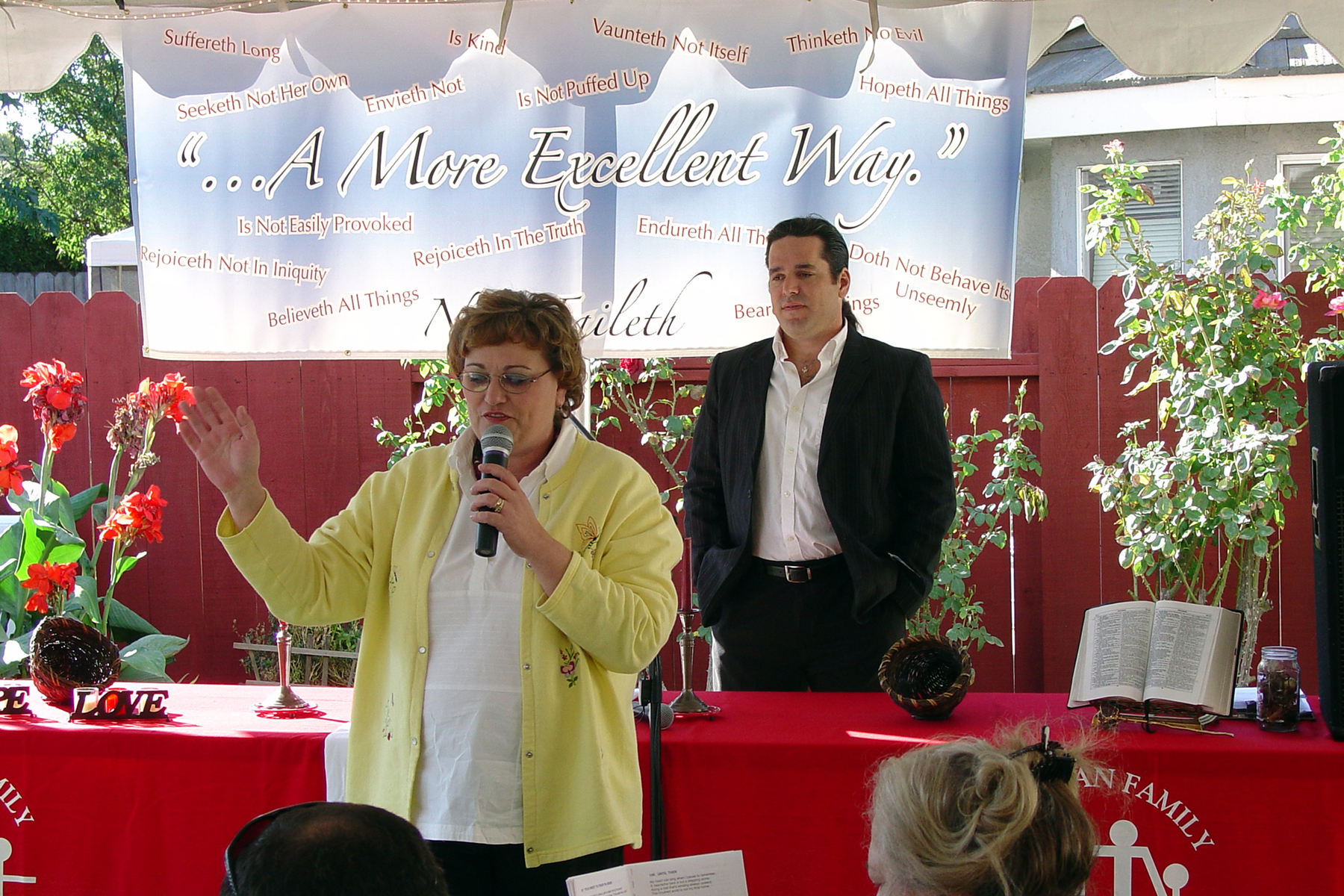 Julie (standing) & Roger Lightfoot (standing with back to camera), unknown (seated), Brian Lightfoot II (seated), Jessica Norwood (standing), Lisa, Victoria (seated at end), Vanessa (seated), & Robert Lightfoot (seated, obscured), unknown (seated), Brent Norwood (standing), Marcey Lightfoot (standing), Ryan Norwood (with Marcey), Michael (standing), and Carol Lightfoot (standing)