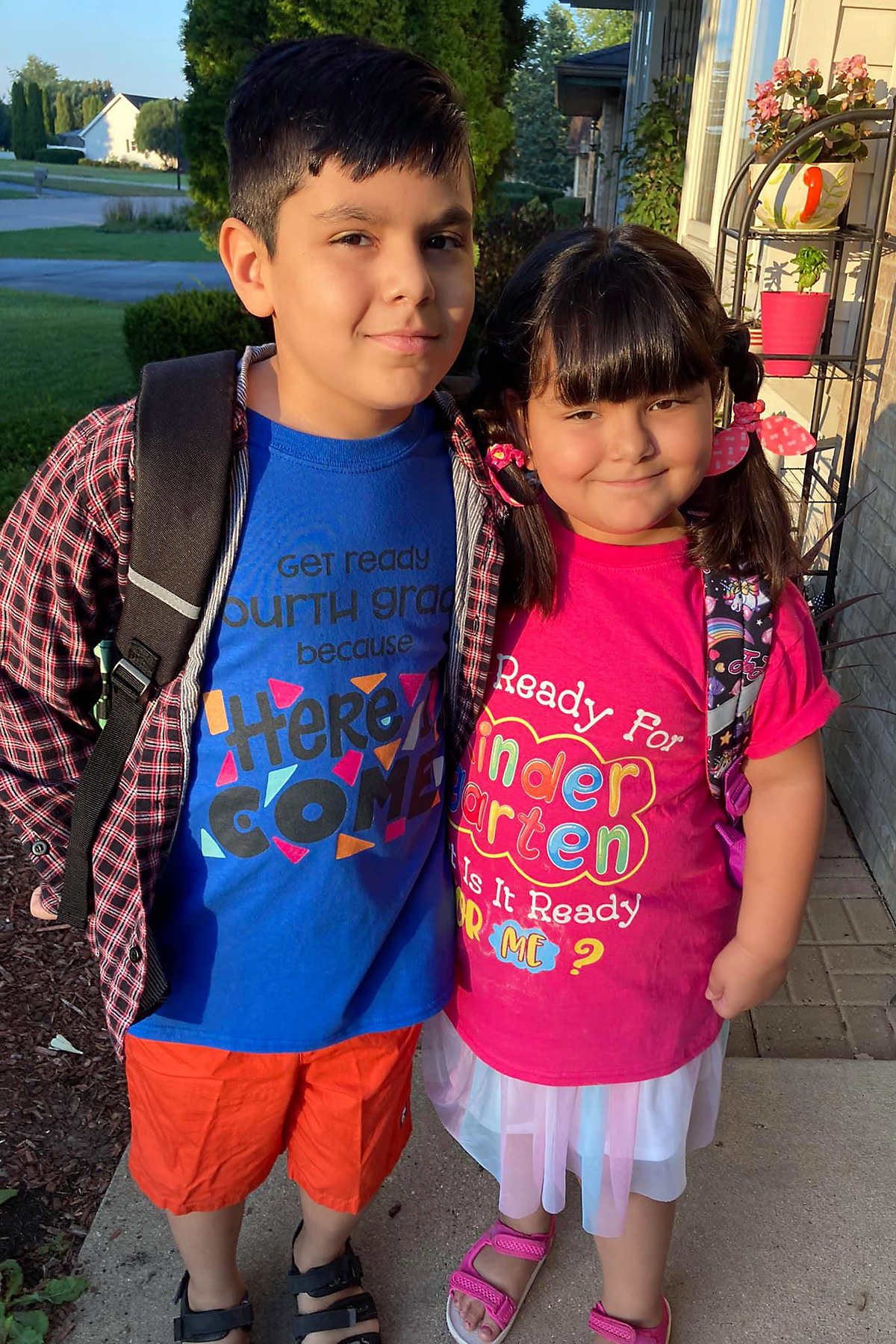 Vanessa is about 6 months pregnant and the kids are wearing t-shirts saying that they will soon be an aunt and an uncle. January 3, 2021 at Madison, WI