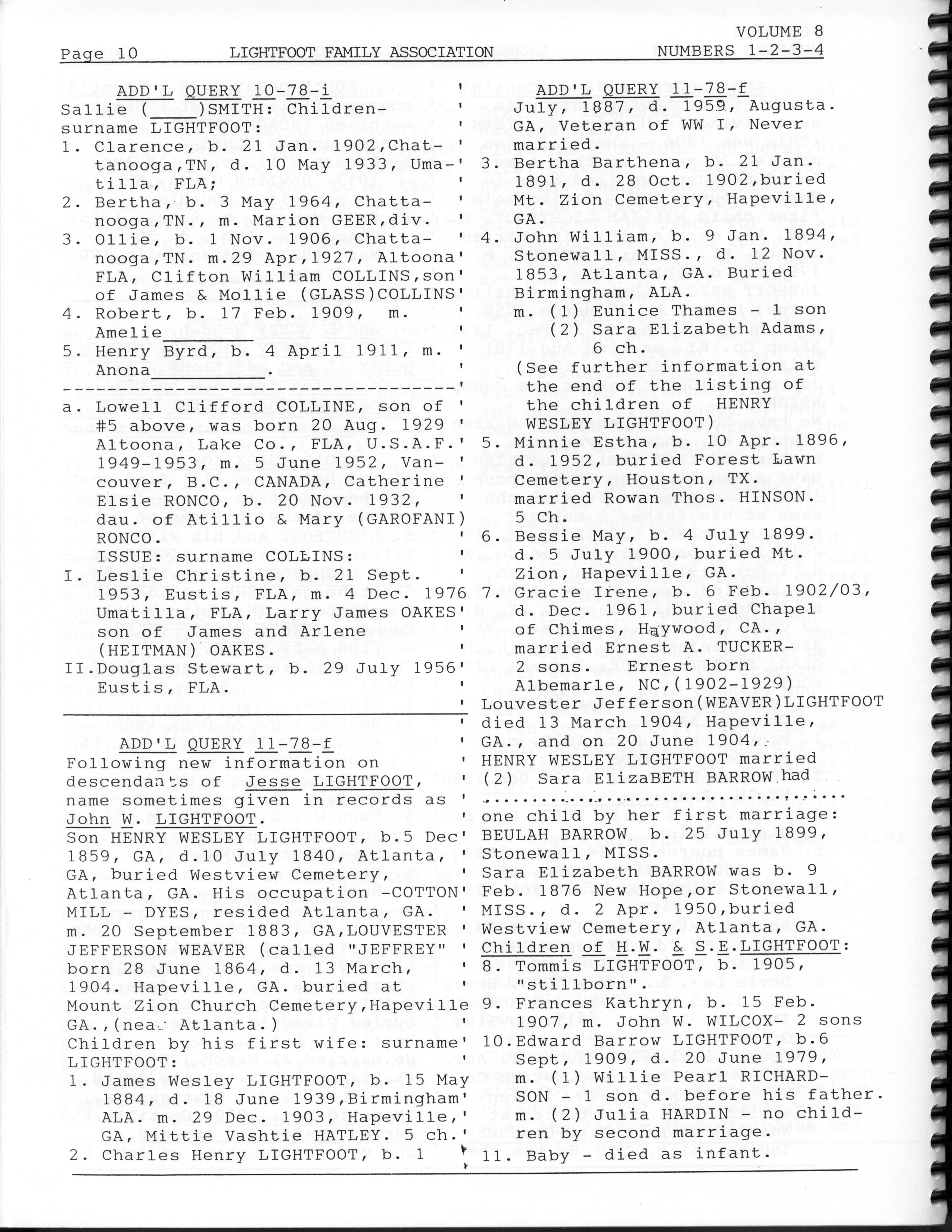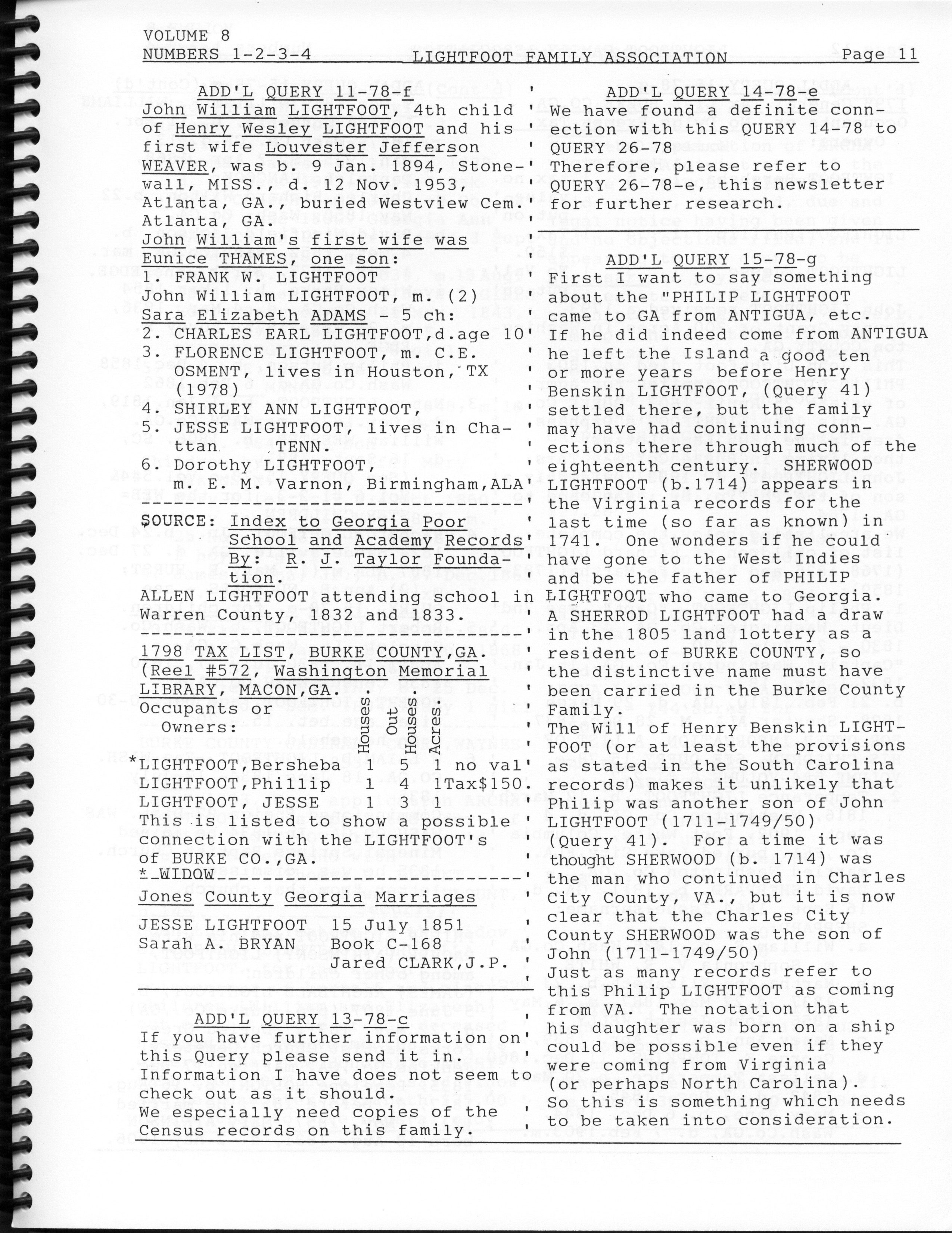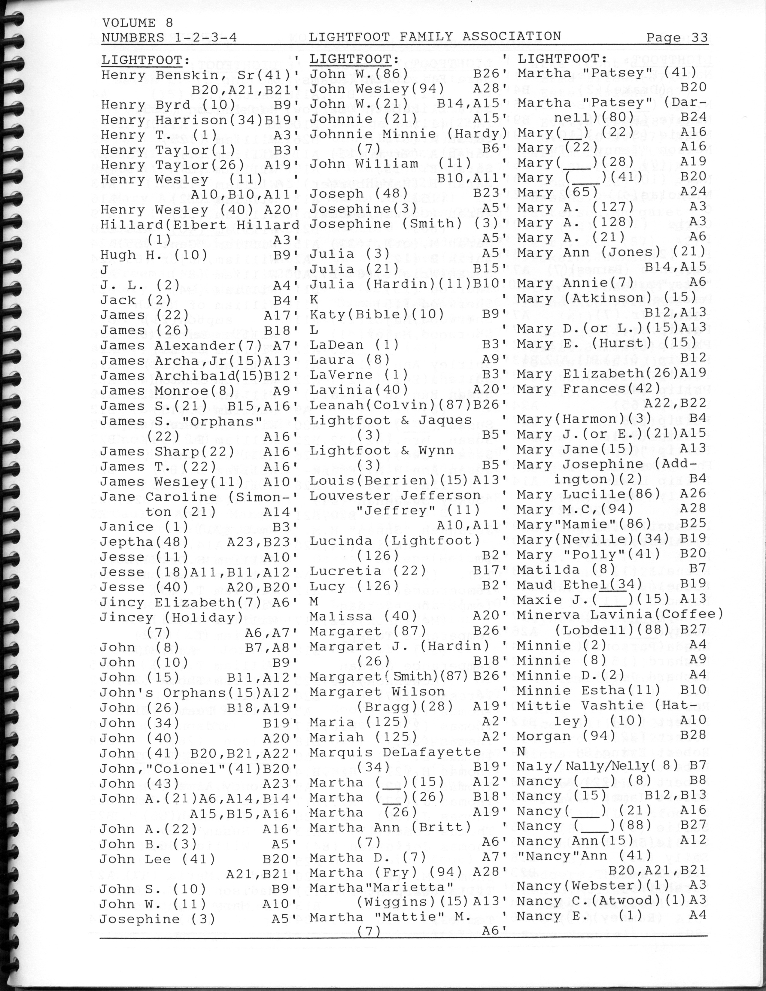 All four quarterly issues were combined into one large issue of thirty-six pages. This was the last issue ever published by the Lightfoot Family Association.