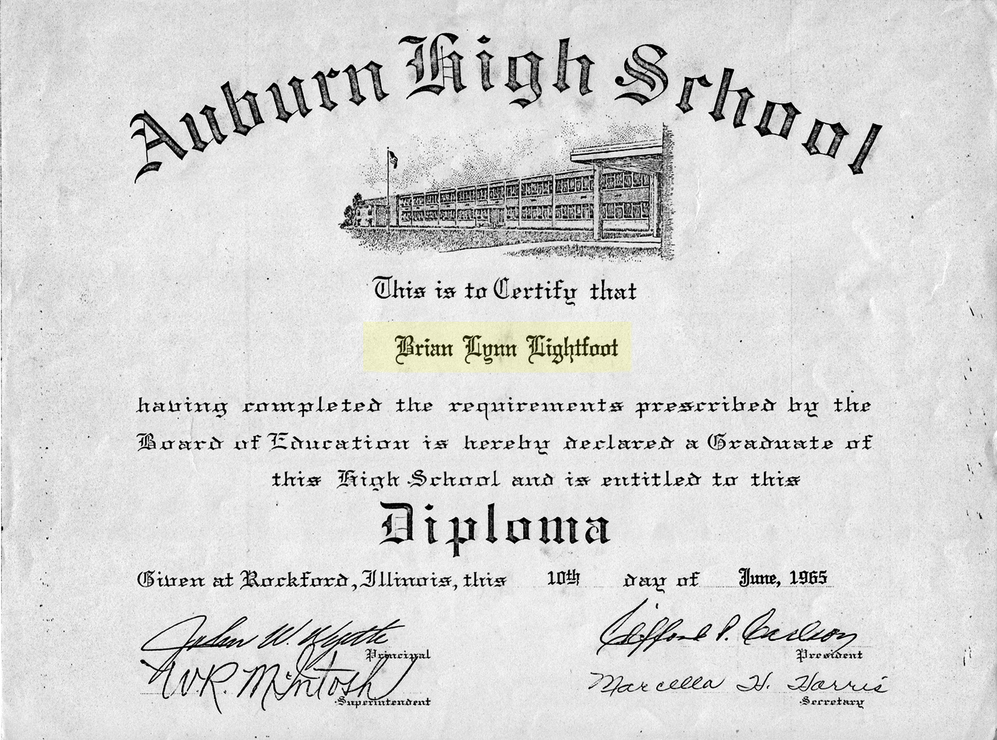 • He was educated at Auburn High School Graduation on 10 June 1965 in Rockford, IL.
