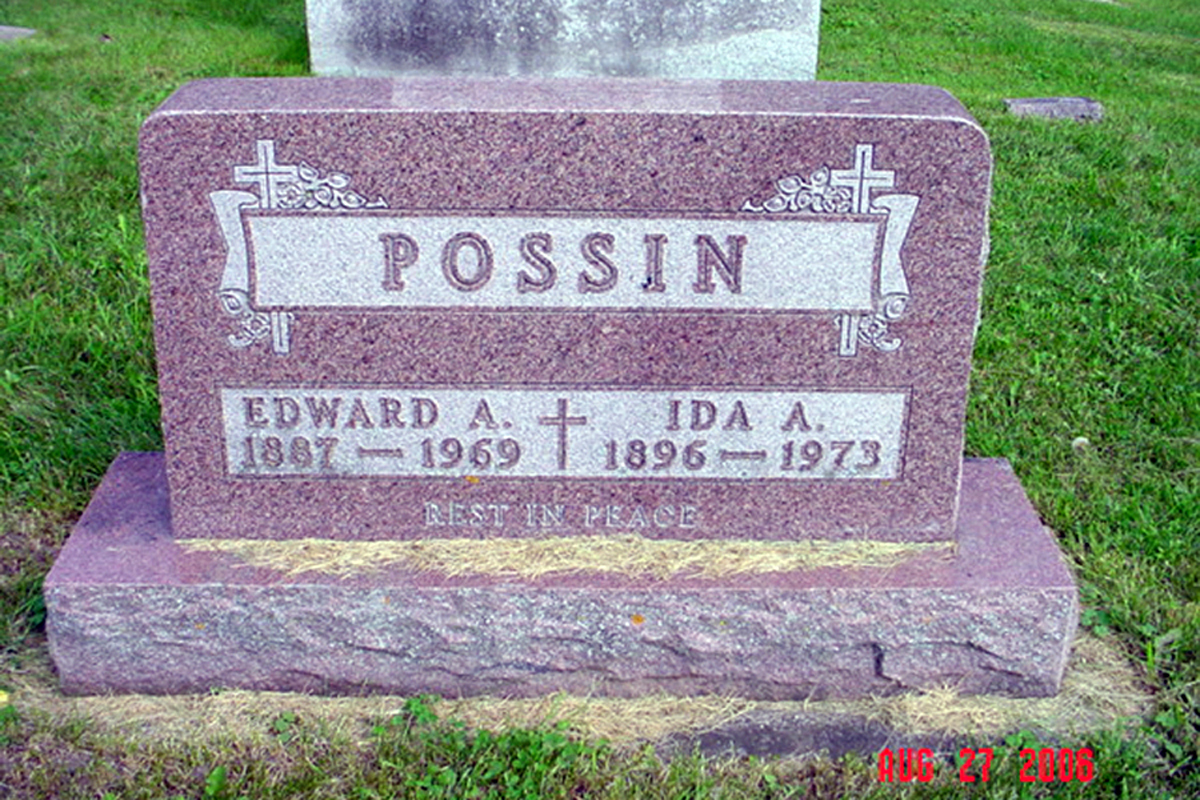 "Minnesota Death Index, 1908-2002," database, FamilySearch.org (https://familysearch.org/search/collection/1937234 : accessed 23 Apr 2015); Ed A. Possin, 28 Nov 1969; from "Minnesota, Death Index, 1908-2002," database, Ancestry (http://www.ancestry.com : 2001); citing Blue Earth, Minnesota, record 1760389, certificate number 028103, Minnesota Department of Health, Minneapolis.