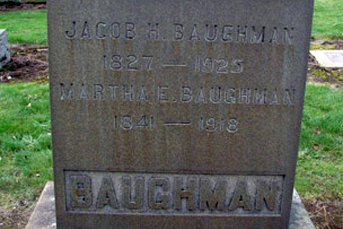 • She was buried after 11 May 1918 in the Belle Passi Cemetery in Woodburn, OR. Martha married George M. Woodward on 17 April 1857. (George M. Woodward was born about 1840, died on 5 April 1868 and was buried in April 1868 in Silverton, OR.) Martha next married Jacob Henry Baughman, son of John Jacob Baughman and Anna Barbara Fast, on 17 October 1871.1 2 3 4 (Jacob Henry Baughman was born on 13 January 1827 in Ohio,1 2 3 4 6 7 8 died on 12 February 1925 in Marion, OR 8 and was buried after 12 February 1925 in Woodburn, OR 8.)