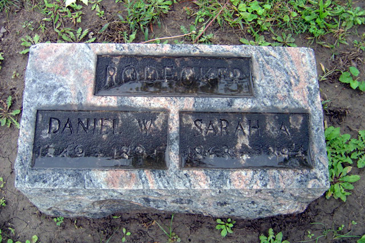Sarah next married Daniel W. Rodecker on 31 March 1886 in , Hancock County, OH.3 (Daniel W. Rodecker was born on 11 March 1849,9 died on 20 January 1894 in Findlay, OH 6 9 and was buried after 20 January 1894 in Findlay, OH 6 9.)