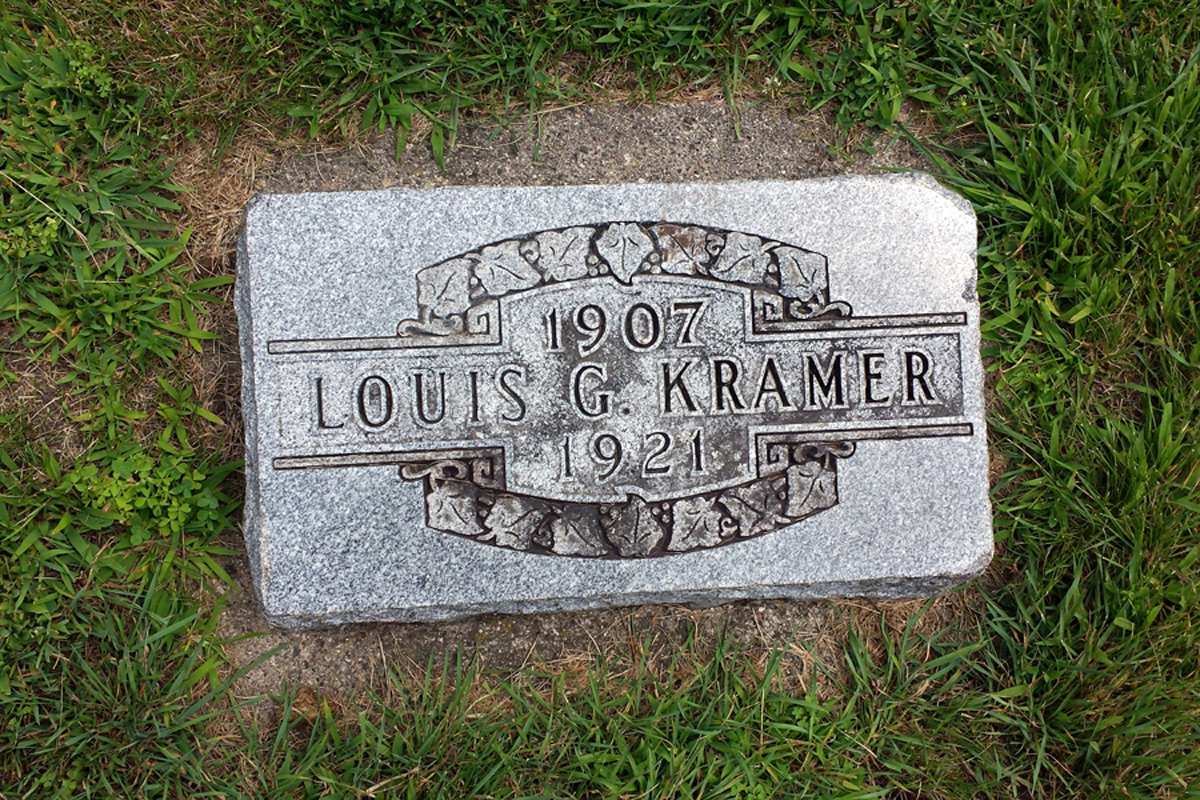 3 "Minnesota Deaths and Burials, 1835-1990," database, FamilySearch (https://familysearch.org/search/collection/1680831 : accessed 15 May 2015), Name: Louis G. Kramer; Death Date: 22 Jul 1921; Death Place: Rochester, Olmsted, Minnesota.