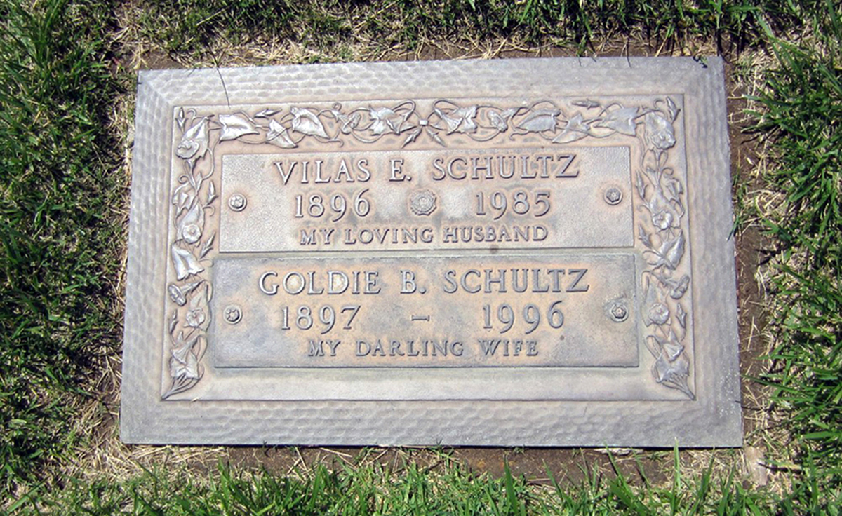 3 "California Death Index, 1940-1997," database, FamilySearch (https://familysearch.org/search/collection/2015582 : accessed 9 Dec 2014), Name: Vilas Emil Schultz; Event Date: 14 May 1985; Event Place: Los Angeles, California, United States.