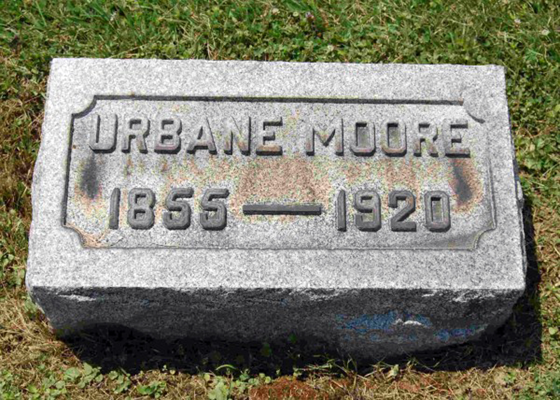 5 Find A Grave, database and images (https://www.findagrave.com/ ); accessed 25 May 2021, memorial page for Urbane Moore (1855-1920), Find a Grave Memorial ID 36637967, citing Greenlawn Cemetery, Greenford, Mahoning County, Ohio, USA