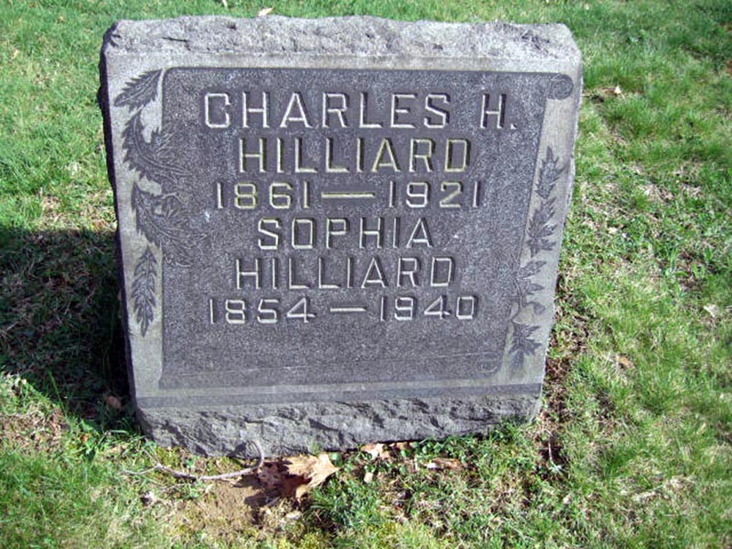 Find A Grave, database and images (https://www.findagrave.com/ ); accessed 08 April 2019), memorial page for Charles H. Hilliard (10 Dec 1861'9622 Mar 1921), Find A Grave Memorial no. 105674282, citing Grandview Cemetery, Salem, Columbiana County, Ohio, USA