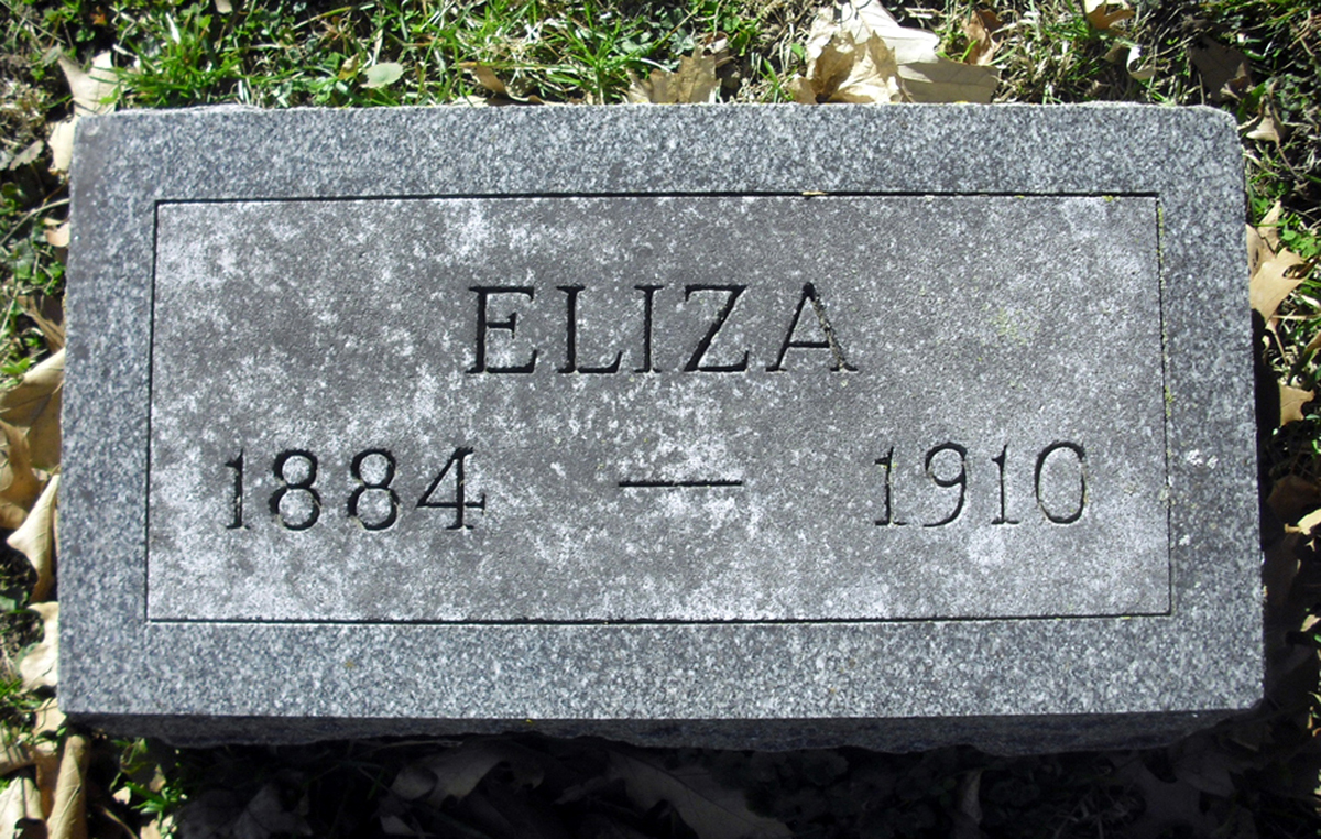 Find A Grave, database and images (https://www.findagrave.com/ ); (accessed 02 October 2019), memorial page for Eliza McLaughlin (1884-1910), Find A Grave Memorial no. 144434266, citing Oakland Cemetery, Iowa City, Johnson County, Iowa, USA