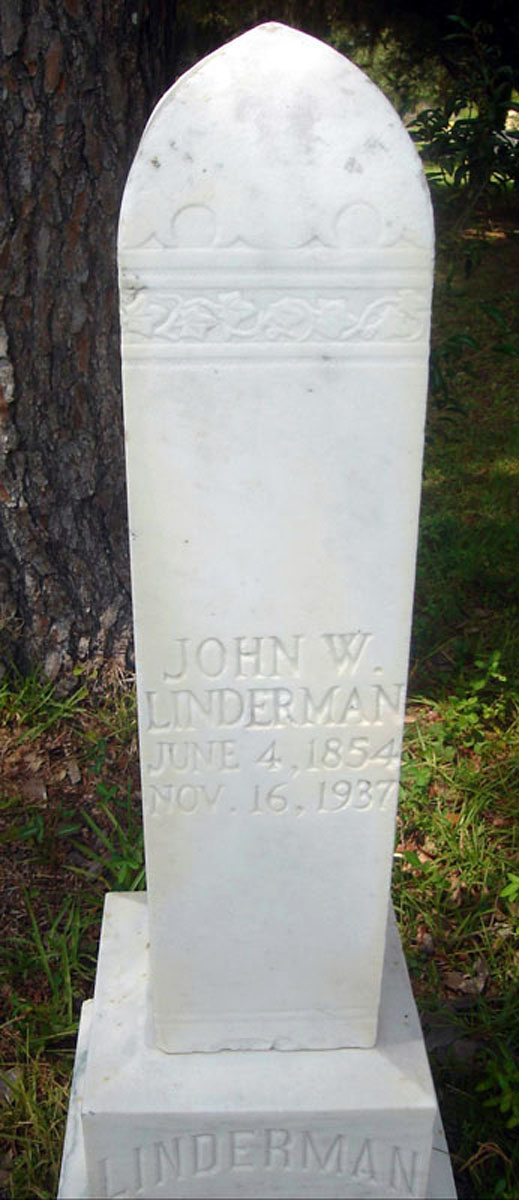 4 Find A Grave, database and images (https://www.findagrave.com/ ); accessed 28 August 2021), memorial page for John W. Linderman (4 Jun 1854-16 Nov 1937), Find a Grave Memorial ID 21338855, citing Nichols Cemetery, Oxford, Sumter County, Florida, USA