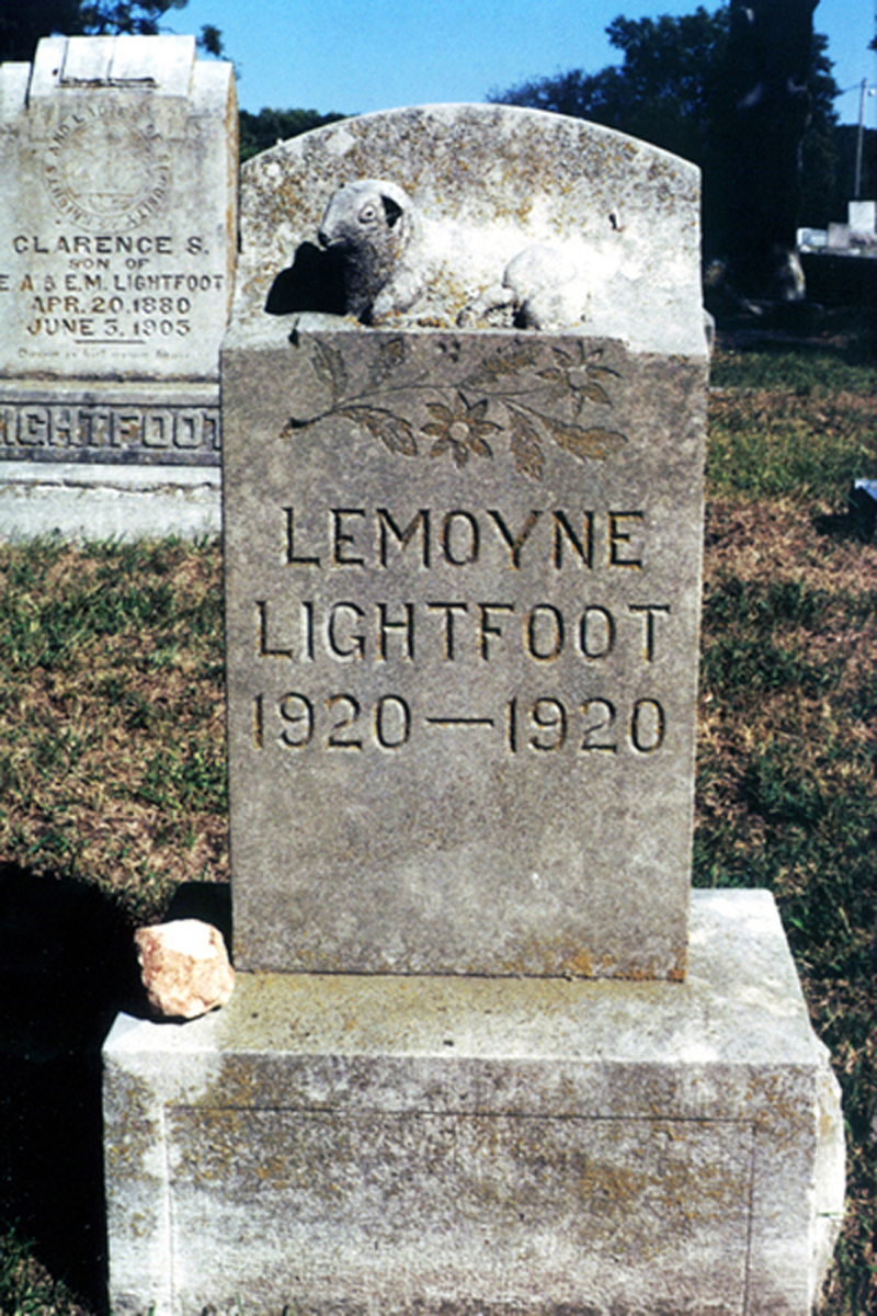 The exact parentage of Lemoyne Lightfoot is not known for certain. I suspect that he may be a child or grandchild of Edgar Vance Lightfoot based on the proximity of his gravestone to that of Edgar's but more research is needed. (Brian L. Lightfoot)
