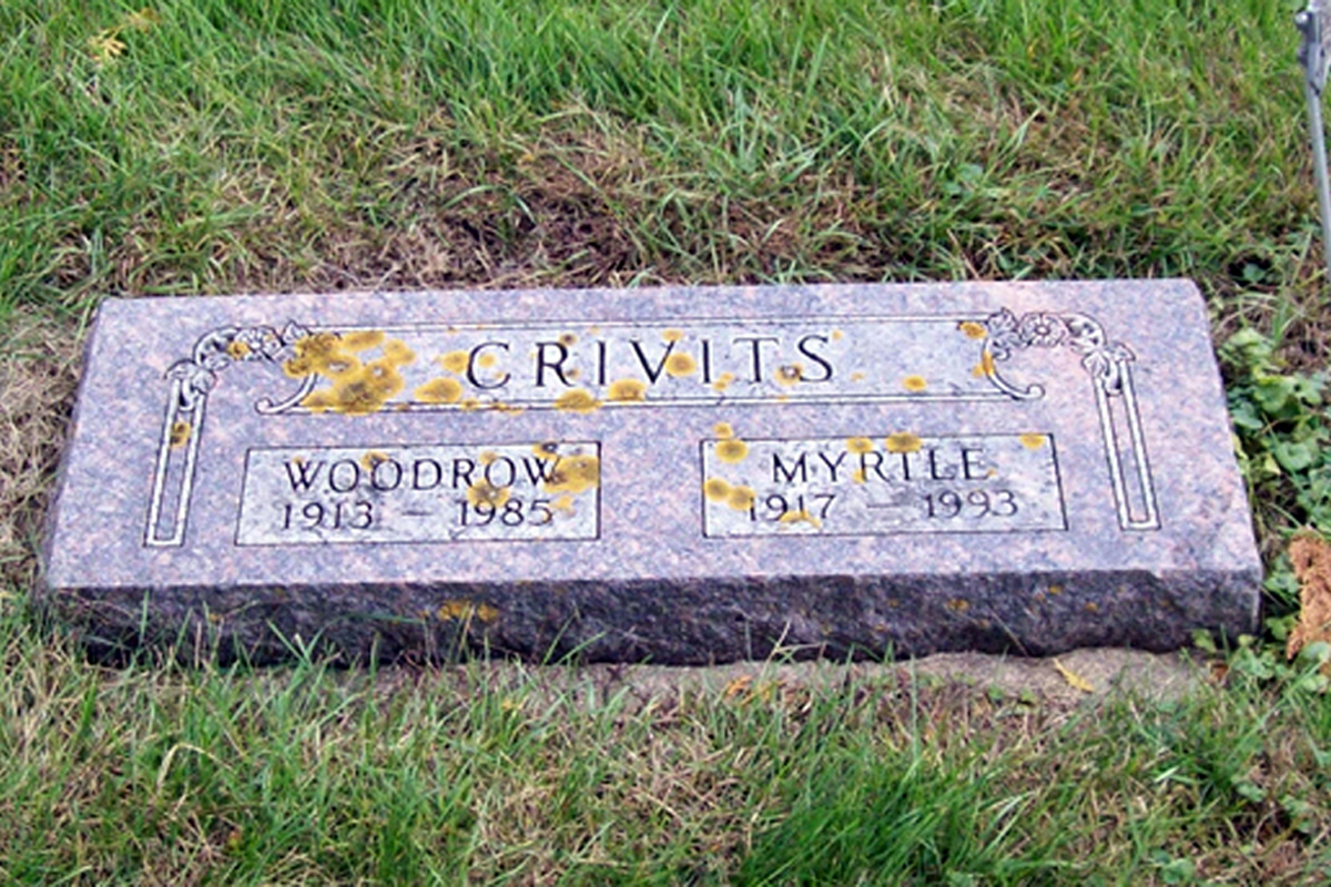 • She was buried after 12 April 1993 in the Etna Cemetery in Etna, MN. Myrtle married Woodrow Theodore Crivits, son of Theodore John Crivits and Anna F. Frasch, on 26 July 1935 in , Fillmore County, MN.1 (Woodrow Theodore Crivits was born on 17 March 1913 in Wisconsin,4 5 6 died on 28 March 1985 in Spring Valley, MN 1 6 and was buried after 28 March 1985 in Etna, MN 6.) |