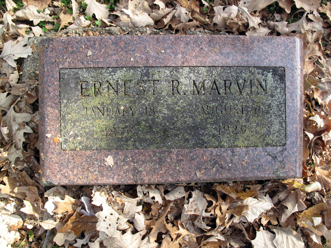 Find A Grave, database and images (https://www.findagrave.com/ ); accessed 28 December 2018), memorial page for Ernest R. Marvin (18 Jan 1875\endash 16 Aug 1929), Find A Grave Memorial no. 165056609, citing Mount Auburn Cemetery, Harvard, McHenry County, Illinois, USA