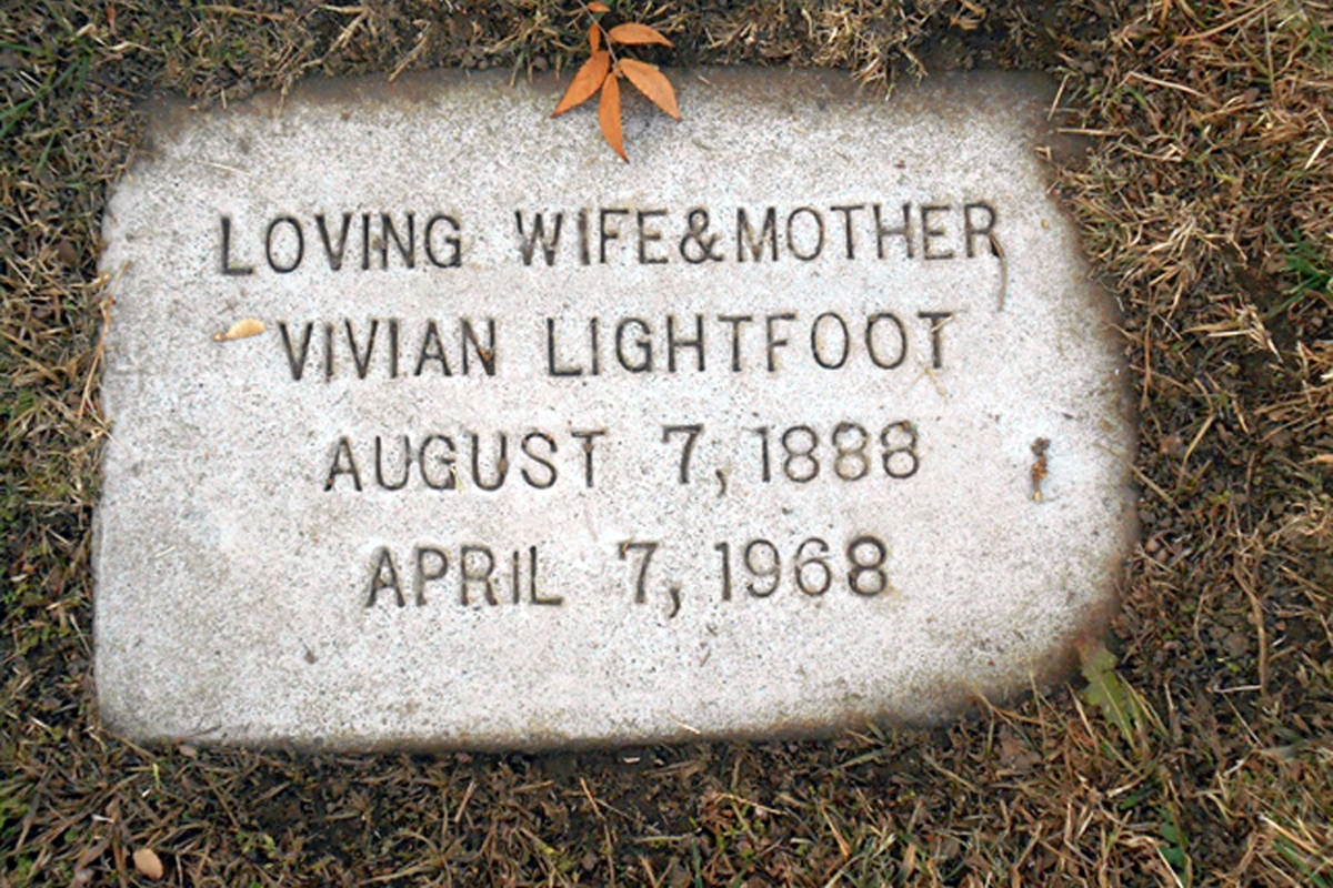 • She was buried after 7 April 1968 in the Odd Fellows Lawn Cemetery and Mausoleum in Sacramento, CA. Bertha married Samuel Charles Lightfoot, son of Samuel Greenberry Lightfoot and Laura Maria Salisbury, about 1908.1 2 3 4 (Samuel Charles Lightfoot was born on 24 March 1878 in Salem, OR,1 2 7 8 9 10 11 died on 13 June 1944 in Stockton, CA 10 11 and was buried after 13 June 1944 in Odd Fellows Lawn Cemetery and Mausoleum, Sacramento, CA 11.). The cause of his death was Bronchopneumonia/Arteriosclerosis.