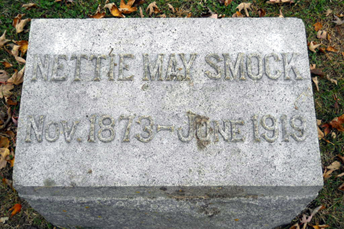 • She was buried after 13 June 1919 in the Hillside Cemetery in Belleville, MI. Nettie married George Archie Smock, son of George Smock and Mary McKinslry, on 30 September 1897 in Van Buren Township, Wayne County, MI.1 2 (George Archie Smock was born on 27 May 1876 in Van Buren Township, Wayne County, MI,1 2 6 7 8 died on 3 December 1965 in Wyandotte, MI 8 and was buried after 3 December 1965 in Belleville, MI 8.)