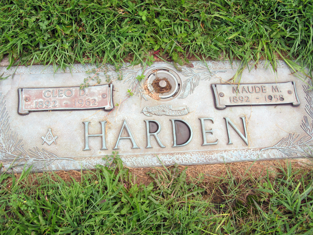 • She was buried on 3 July 1958 in the Beverly Hills Memorial Park in Morgantown, WV. Maude married Cleo Dorsey Harden, son of Joseph Baker Harden and Lundia Jane Fast, in 1917 in , Marion County, WV.1 2 3 4 (Cleo Dorsey Harden was born on 8 March 1892 in Smithtown, WV,2 3 4 8 9 10 11 12 13 died on 15 August 1962 in Fairmont, WV 12 13 and was buried after 15 August 1962 in Beverly Hills Memorial Park, Morgantown, WV 13.)