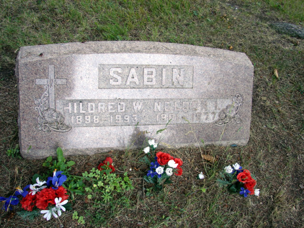 Find A Grave, database and images (https://www.findagrave.com/ ); accessed 01 July 2019), memorial page for Hildred W. Worthing Sabin (15 Feb 1898\endash 25 Jun 1993), Find A Grave Memorial no. 40858550, citing Elm Hall Cemetery, Elm Hall, Gratiot County, Michigan, USA