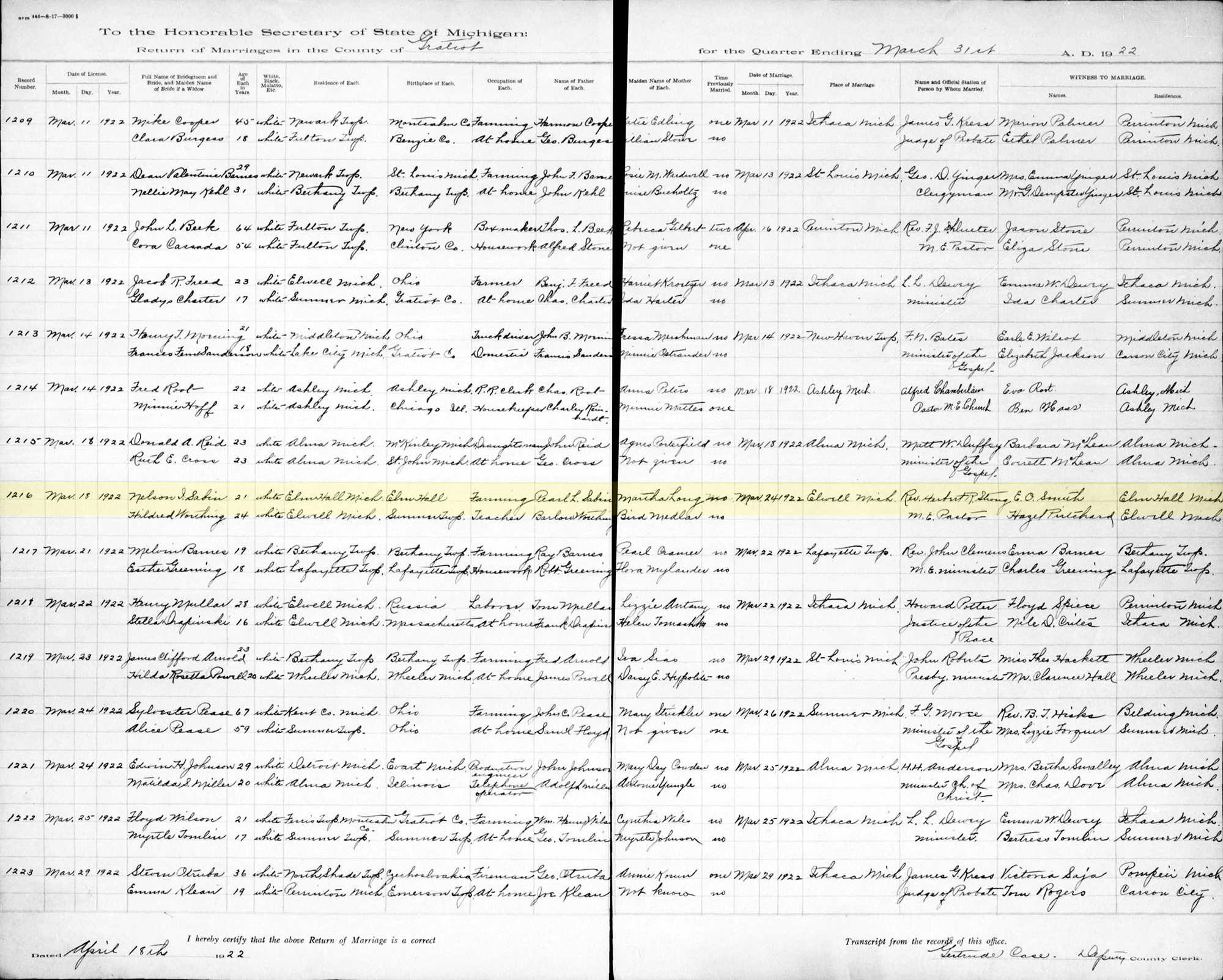 • Marriage Image: 24 March 1922, in Elwell, MI. • They appeared on the 1930 US Census in Lansing, MI on 7 April 1930. 1