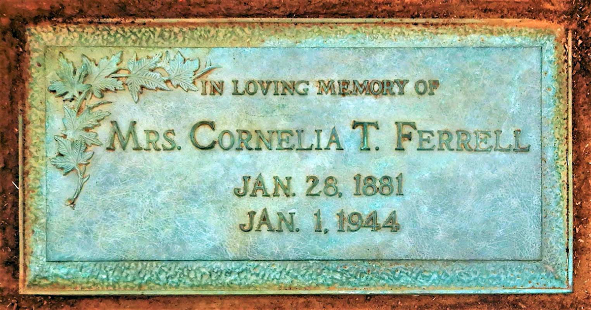 6 Find A Grave, database and images (https://www.findagrave.com/ ); accessed 31 July 2021, memorial page for Cornelia Taylor Ferrell (28 Jan 1881-1 Jan 1944), Find a Grave Memorial ID 51702958, citing Shannon Rose Hill Memorial Park, Fort Worth, Tarrant County, Texas, USA