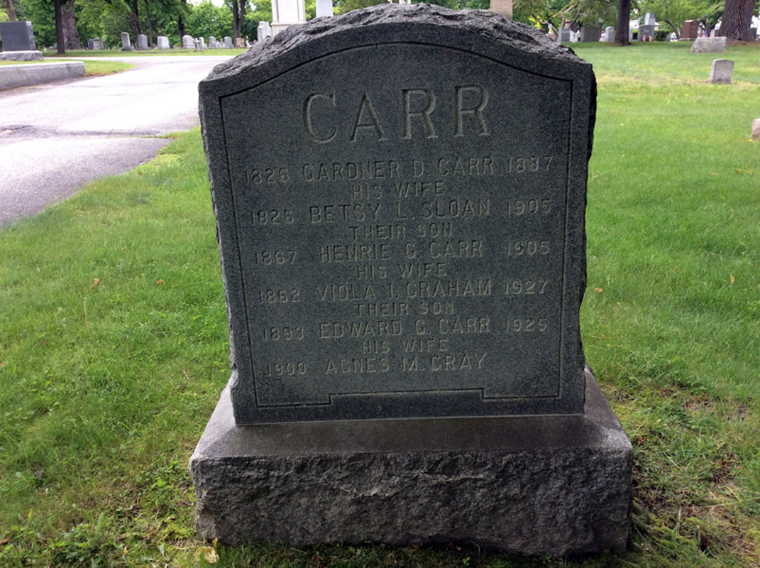 3 Find A Grave, database and images (https://www.findagrave.com/ ); accessed 12 April 2020, memorial page for Henrie G Carr (13 Mar 1867-24 Mar 1905), Find a Grave Memorial no. 166376213, citing Woodlawn Cemetery, Nashua, Hillsborough County, New Hampshire, USA