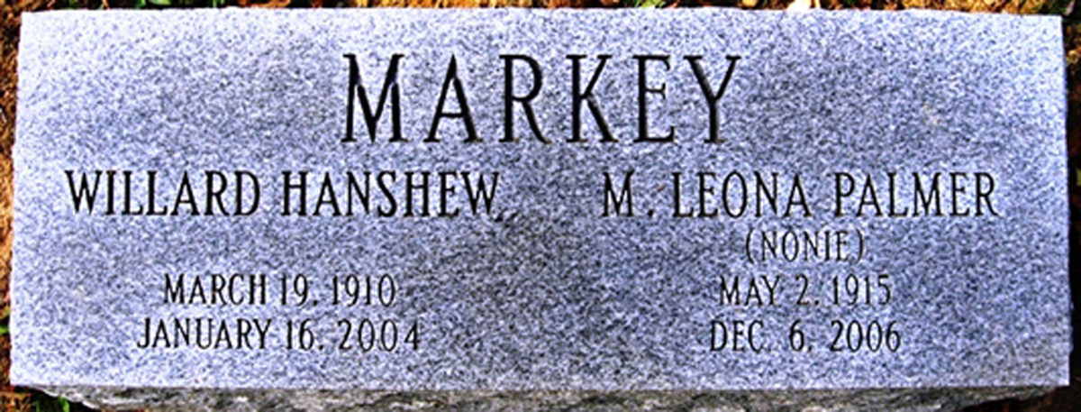 Find A Grave, database and images (https://www.findagrave.com/ ); accessed 9 April 2019), memorial page for Willard Hanshew Markey (19 Mar 1910\endash 16 Jan 2004), Find A Grave Memorial no. 24752928, citing Mount Olivet Cemetery, Frederick, Frederick County, Maryland, USA