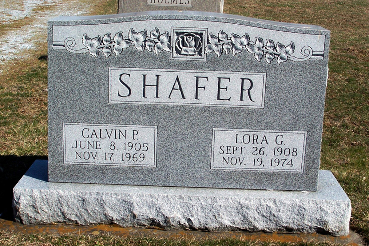 • She was buried on 22 November 1974 in the Pleasant View Church of the Brethren Cemetery in Burkittsville, MD. Lora married Calvin Pontius Shafer, son of Theodore Calvin Shafer and Effie Jane Castle, about 1924.1 (Calvin Pontius Shafer was born on 8 June 1905 in Middletown, MD,1 4 5 6 died on 17 November 1969 in Middletown, MD 6 and was buried on 20 November 1969 in Burkittsville, MD 6.)