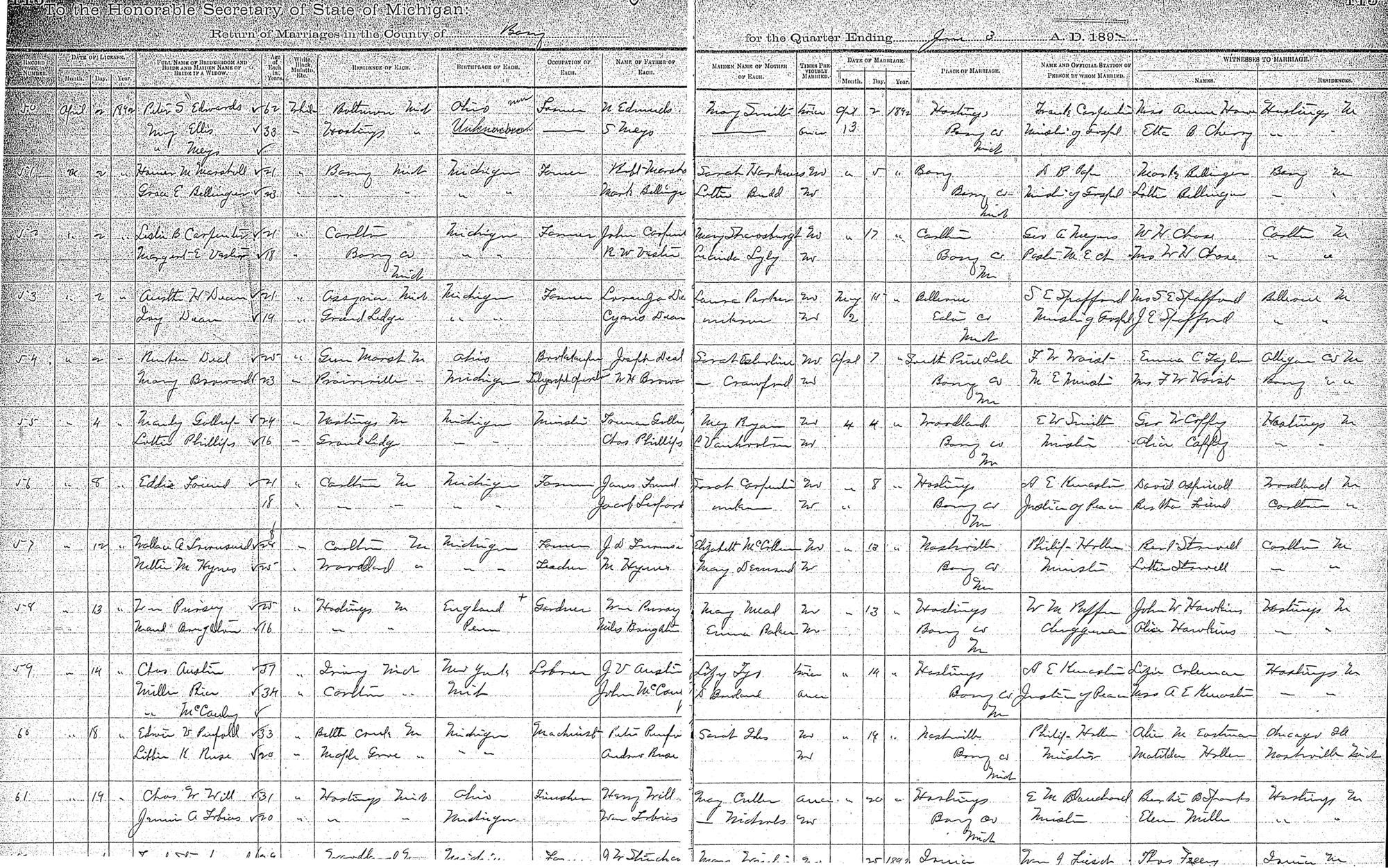 • Marriage Image: 20 April 1892, in Hastings, MI. 1