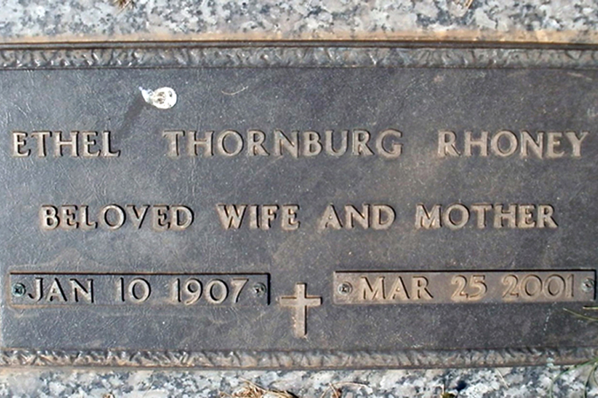• She was buried on 27 March 2001 in the Catawba Memorial Park in Bandys Township, Catawba, NC. Ethel married Horace Dixon Rhoney, son of William Lawrence Rhoney and Georgia Anna Pendleton, on 18 December 1925 in Catawba County, NC.1 (Horace Dixon Rhoney was born on 25 March 1896 in Catawba County, NC,1 3 4 5 6 died on 31 August 1991 in Granite Falls, NC 5 6 and was buried on 8 September 1991 in Bandys Township, Catawba, NC 5 6.) |