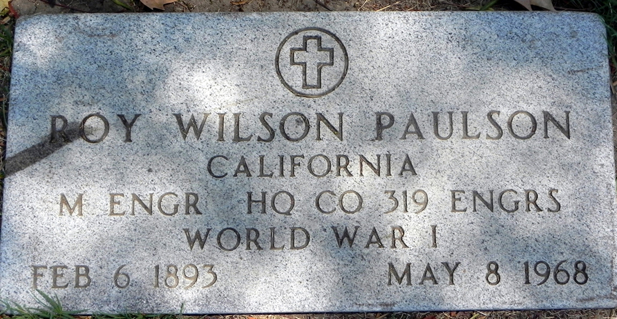 6 Find A Grave, database and images (https://www.findagrave.com/ ); (accessed 23 August 2019), memorial page for Roy W. Paulson, Sr (6 Feb 1893\endash 8 May 1968), Find A Grave Memorial no. 75689389, citing Oak Hill Memorial Park, San Jose, Santa Clara County, California, USA