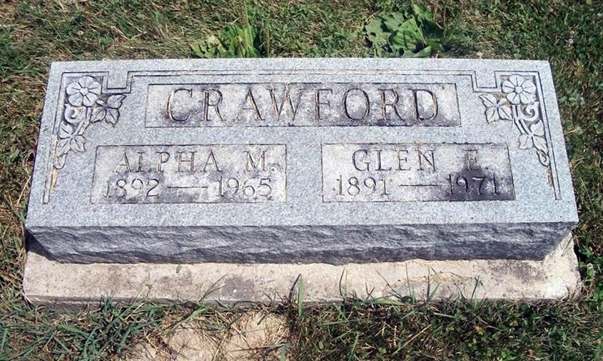 Find A Grave, database and images (https://www.findagrave.com/ ); accessed 15 May 2020, memorial page for Glen Erwin Crawford (14 Sep 189-\endash 21 Jun 1971), Find a Grave Memorial no. 59720994, citing La Plata Cemetery, La Plata, Macon County, Missouri, USA