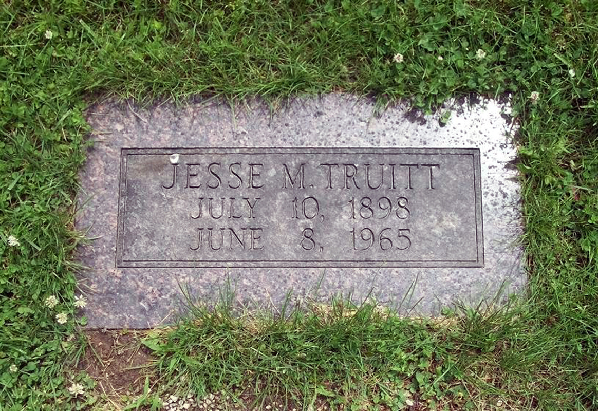 4 Find A Grave, database and images (https://www.findagrave.com/ ); accessed 16 May 2020, memorial page for Jesse Martin Truitt (10 Jul 1898\endash 8 Jun 1965), Find a Grave Memorial no. 59733210, citing Maple Hills Cemetery, Kirksville, Adair County, Missouri, USA