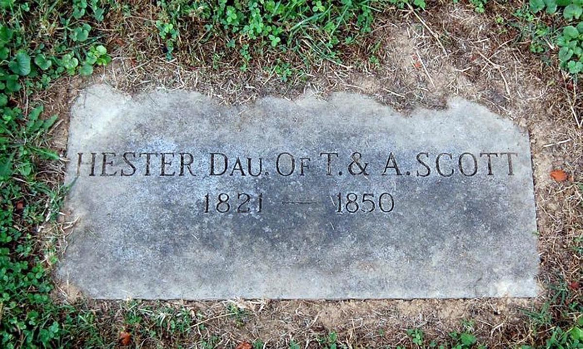 Find A Grave, database and images (https://www.findagrave.com/ ); accessed 16 September 2021, memorial page for Hester Scott (1821-1850), Find a Grave Memorial ID 60427448, citing Gravel Hill Cemetery, Cheshire Township, Gallia County, Ohio, USA