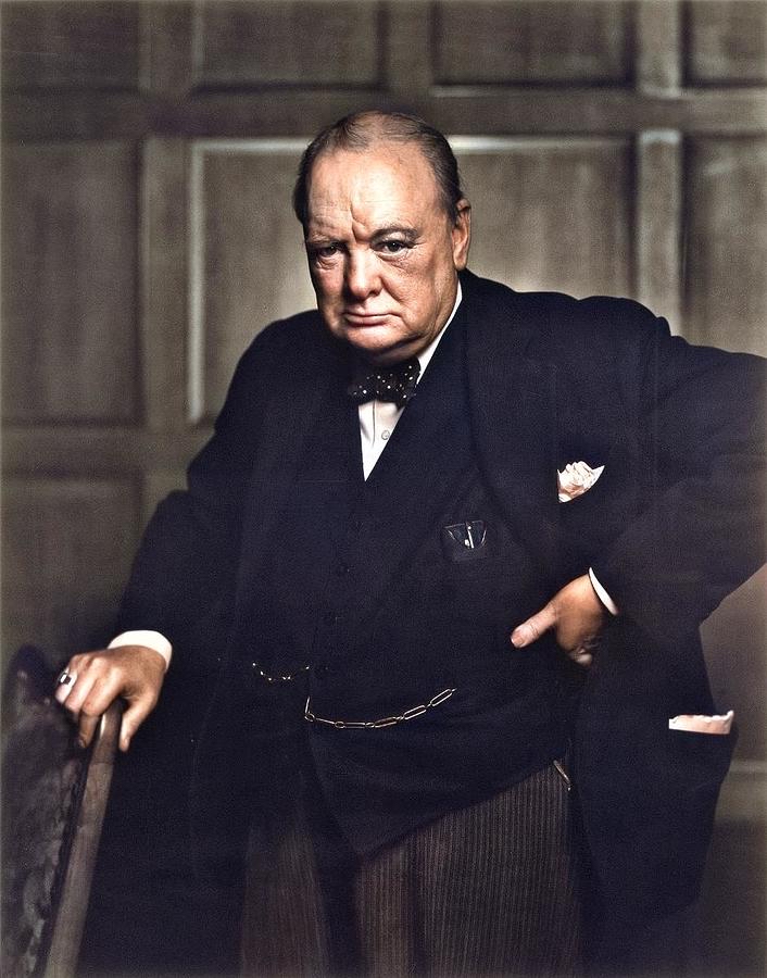 British Prime Minister, Nobel Prize Recipient. He received worldwide acclaim for leading Great Britain through the Second World War, especially during the first two years when the nation was enduring intense fire bombings by Nazi Air Force planes and being the sole resistance to German Nazi dictator Adolf Hitler. With the war near its end, he helped broker the peace agreements which led to the partitioning of Europe by Russia and the West, and it was Churchill who coined the term "Iron Curtain," referring to the demarcation between East and West Europe. Born the son of Randolph and Jennie Churchill, his father was a noted politician and his mother an American, the daughter of Leonard Jerome, a New York businessman. Educated at Harrow, a school for boys in London, he ranked at the bottom of his class in grades. With these low grades, he was not college material. After three attempts at the entrance exam before passing, he graduated from the Royal Military College at Sandhurst ranking 20th in a class of 130. He joined the Army, serving in Cuba and in South Africa, where he was taken prisoner for two weeks before escaping during the Boer War. Churchill displayed conspicuous physical courage on the battlefield, and, from 1895 to 1900 while in the Sudan, his vivid articles for British newspapers received wide notice and gave him much needed income. His well-publicized military career launched his political career, which began with election to Parliament in 1900. Other positions followed: Lord of the Admiralty, Secretary of State for War and Air, and then Chancellor of the Exchequer. While being semi-retired, the World War II hostilities dictated his return to his old post First Lord of the Admiralty. When Prime Minister Neville Chamberlain resigned in disgrace in 1940, Churchill became Prime Minister, and remained in office through the end of the war. In the postwar era, his party lost control of the Parliament, thus he was no longer in office. Six years later, he again assumed the reigns of power as Prime Minister strongly supporting initiatives for the defense of Western Europe against communist aggression. In 1953, Winston Leonard Spencer Churchill was the recipient of the Nobel Prize for Literature "for his mastery of historical and biographical description as well as for brilliant oratory in defending exalted human values." The same year, he was Knighted. In poor health, he left politics for good in 1955 and spent most of his retirement in southern France. While in England, his residence was located at Chartwell House in Kent where the family lived from its purchase in 1922 and where he suffered his final stroke resulting in his death. He lingered for nine days dying at age 90, 70 years to the day of his father's death. His body lay in state in Westminster Hall for three days followed by a state funeral service at St Paul's Cathedral. The procession leading to his burial place was elaborate and planned so as many as possible could witness this historic event. His coffin passed down the Thames, the shores lined by millions, on a barge with the cranes of London's docklands bowed in salute. At Waterloo Station, the casket was placed on a special funeral train for the final leg home. Although offered many famous sites for his burial, he had chosen St. Mary's Cemetery, the burial ground of the Churchill family. There is also a memorial for him at Guildhall in London. Churchill was a frequent visitor to America either on official business or because of his American roots. In 1946, Westminster College in Fulton, Missouri, invited him to speak. Instead of delivering a brief talk, he gave a major foreign policy statement, the Iron Curtain Speech, "From Stettin in the Baltic to Trieste in the Adriatic, an iron curtain has descended across the continent..." The Cold War had begun and lasted 40 years. Many monuments have been constructed around the world in honor of Churchill, but none as significant as what graces the campus of Westminster College. Dedicated in 1969 and known as the Winston Churchill Memorial and Library, it is a 12th century structure, the Church of St. Mary the Virgin of Aldermanbury, which was relocated to Fulton from the middle of London. The historic church had the touch of Sir Christopher Wren, who redesigned it in 1677. Today, it is a museum filled with artifacts and information relating to the life and times of Sir Winston Churchill. He was intrigued by the idea of a restored Wren church to be located in America's heartland and commented, "It may symbolize in the eyes of the English-speaking peoples the ideals of Anglo-American association of which rest, now as before, so many of our hopes for peace and the future of mankind." In 1963, United States President John Fitzgerald Kennedy named him "Honorary Citizen of the United States," but Churchill was too ill to attend a White House ceremony, hence his son and grandson accepted the honor for him. By the time of his death, this English statesman had accumulated a large collection of his written papers, which included an autobiography describing his adventures as a officer and war correspondent; a comprehensive biography of his ancestor, the First Duke of Marlborough; and multivolume work about World War I and World War II.