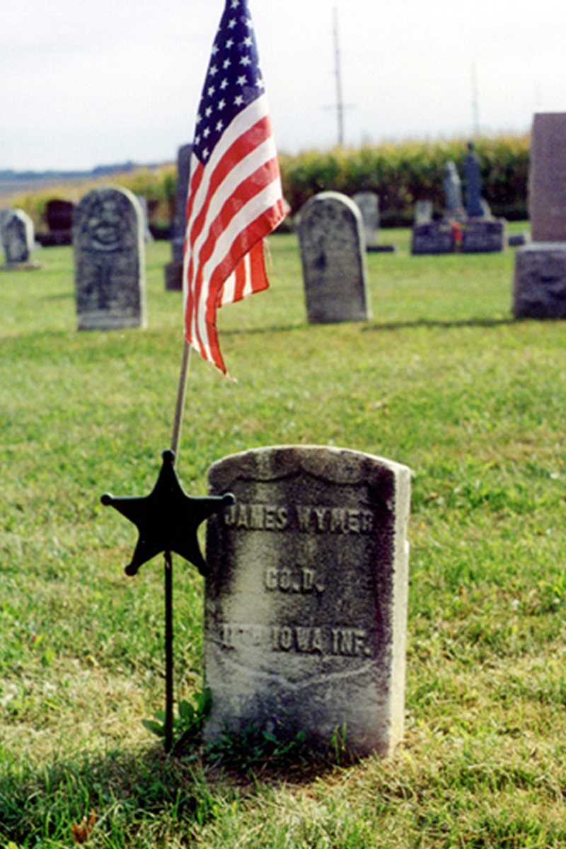 9 Find A Grave, database and images (https://www.findagrave.com/ ); (accessed 16 July 2019), memorial page for Corp James K Wymer (8 Nov 1840\endash 7 Apr 1895), Find A Grave Memorial no. 13240741, citing Pee Dee Cemetery, Cedar County, Iowa, USA
